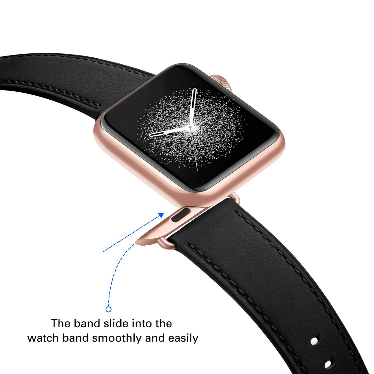 Leather Material: Retro Top Grain Genuine Leather, Leaving Natural Marks Style.Elegant,Breathable,Soft,Comforbable; Clasp And Connector: 316 Stainless Steel Clasp And Connector ,Bright And Never Rust;And The Adapter Is Processed Through Our Special Craft,Secure And Easy To Install Or Remove,And Never Fall Apart; Whats In The Box: 1 X Genuine Leather Watch Band 42Mm(Black Band+Gold Buckle);