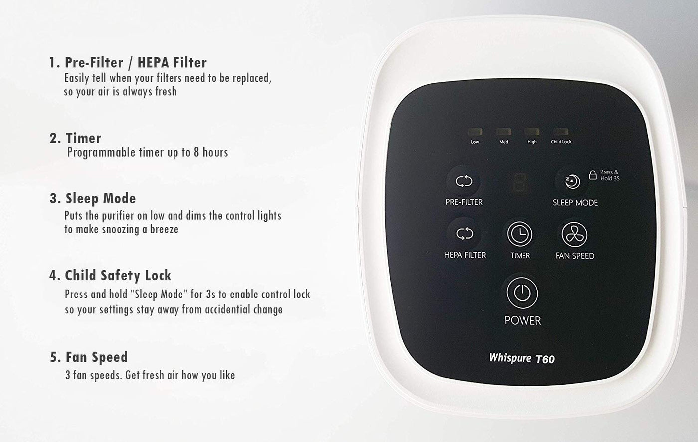 Whirlpool Whispure Wpt60P, True Hepa Air Purifier, Activated Carbon Advanced Anti Bacteria, Ideal For Allergies, Odors, Pet Dand
