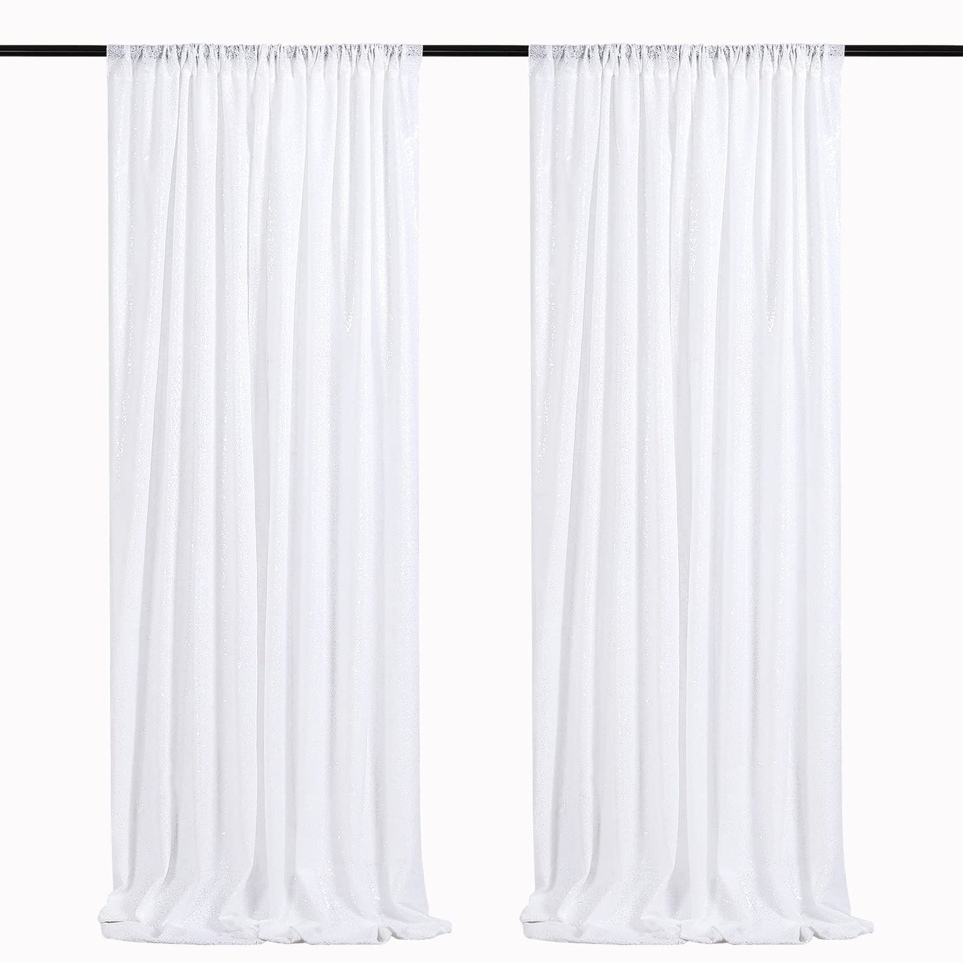 White Sequin Backdrop 2 Panels Curtains 2Ftx8Ft Party Backdrop Glitter Birthday Wedding Curtains Sparkle Photo Backdrop