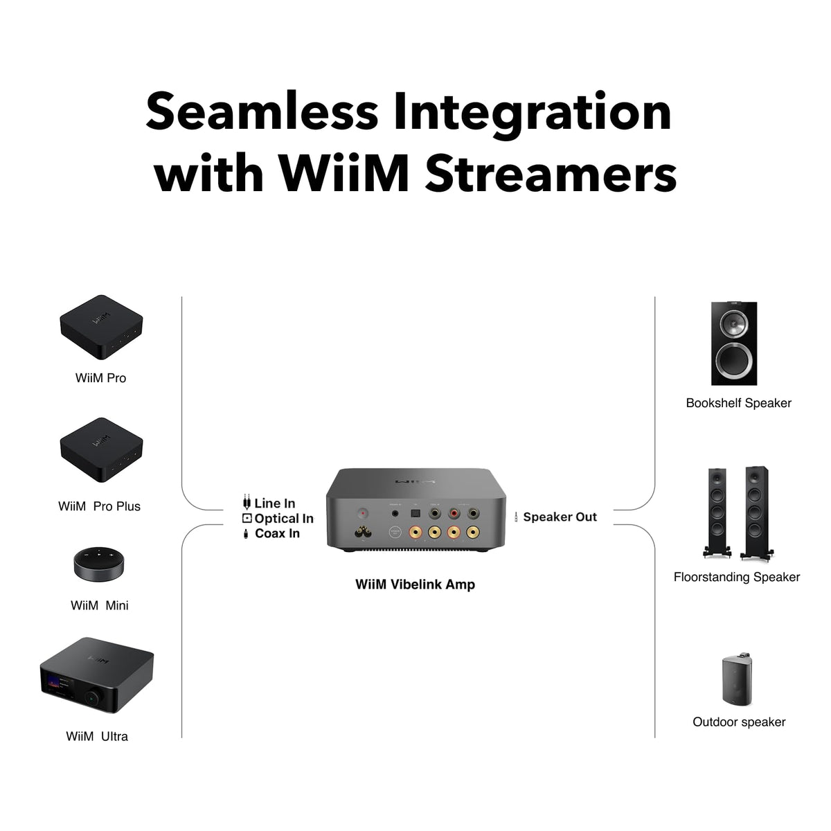 The Wiim Vibelink Amp Transforms Your Passive Speakers With Hi-Res Streaming, Advanced Room Correction, And Smart Home Integration. Experience Premium Sound, Seamless Connectivity, And Effortless Control For Music, Movies, And More - All In One Powerful Package.
