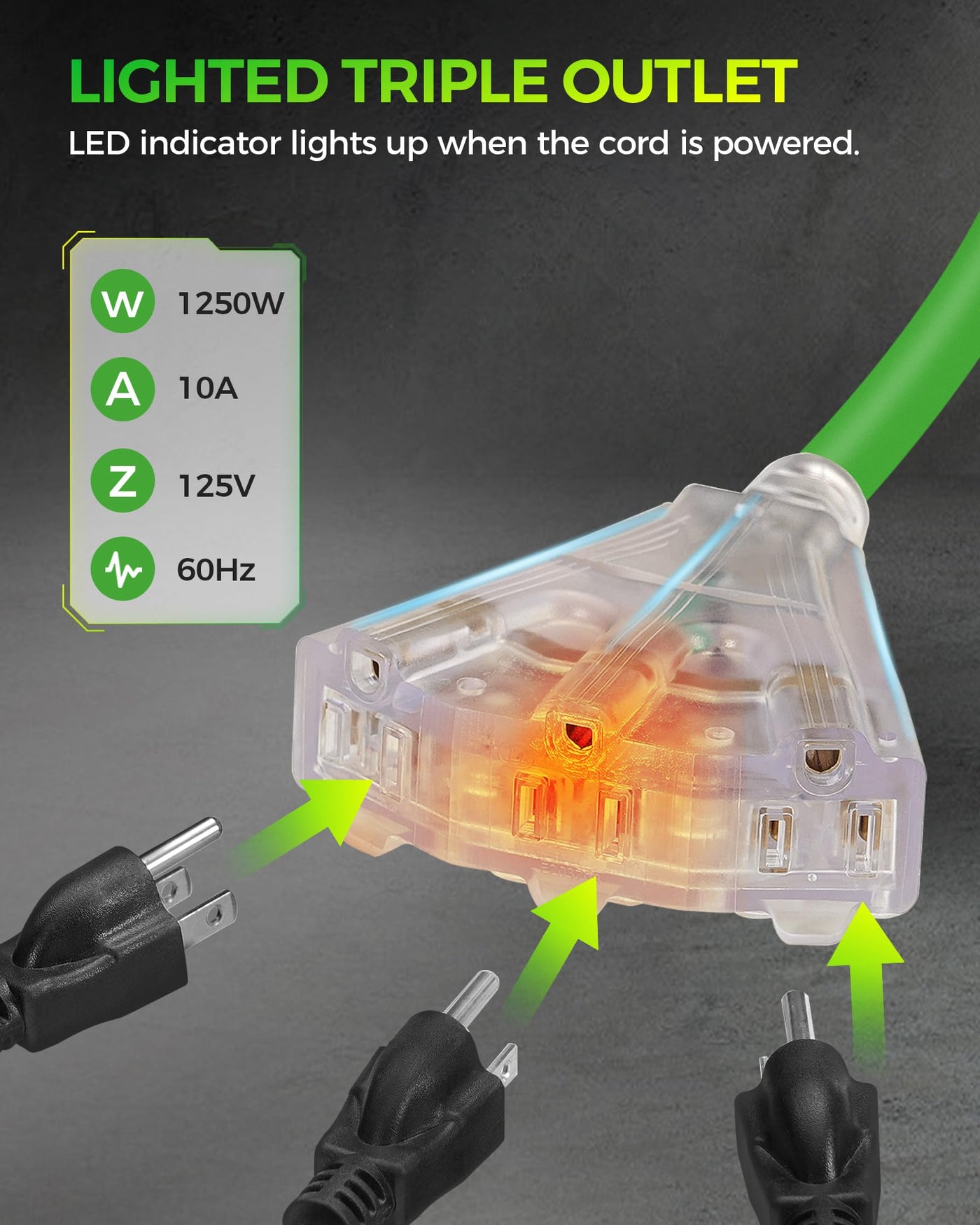 Q: Is the extension cord weather-resistant and suitable for outdoor use?A: Absolutely! The SJTOW cord is UL-listed and features excellent oil and water resistance, ensuring it performs well even in extreme weather conditions.
