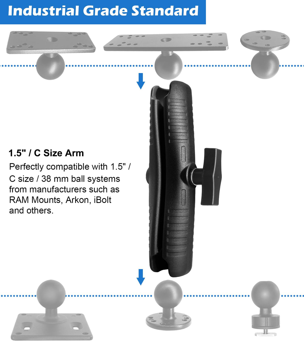 Aluminum Long(9'') Double Socket Arm For 1.5 Inches/C Size / 38Mm Ball Accessories, Powerful Clamp, Compatible With Ram Mount, Ibolt And More