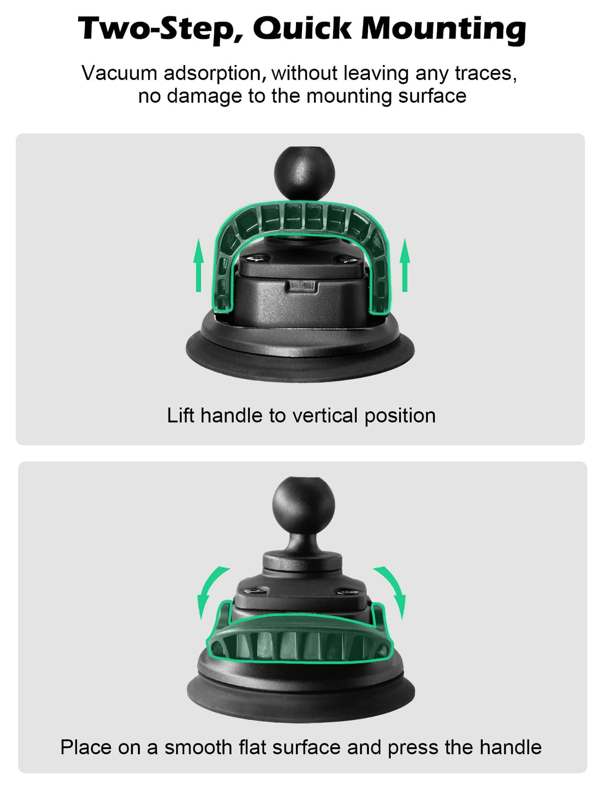 What You See Is What You Get - We Are Committed To All Photos And Videos Being Real Product Shots, So You Can Feel The Real Texture And Get The Product As Advertised. The Special Vacuum Discharge Method Allows More Air To Be Discharged For Greater Suction Power. Weight Capacity Up To 4.4 Lbs. At Rest, Stronger Than Other Suction Cup Base. Perfectly Compatible With 1'' / B Size / 25Mm Arm Systems From Manufacturers Such As Ram Mounts, Arkon, Ibolt And Others. Attach 1'' Arm Accessories For Near-Infinite Adjustability For Optimal Viewing Angle.