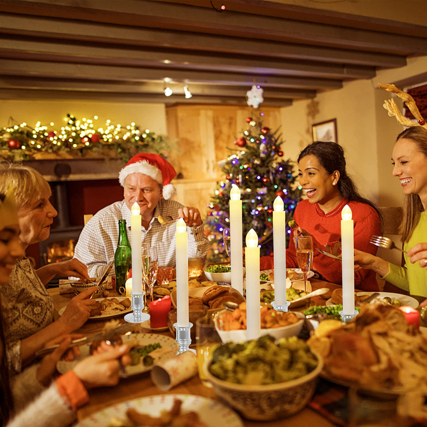 Christmas Window Candles Decoration: Flameless Led Candles They Emit A Warm Glow. These Electric Candles Have No Open Flame, No Dripping Wax, No Smoke, And No Peculiar Smell. They Look No Different From Real Candles And Are Very Real. Very Suitable For Thanksgiving , Christmas, Dining Room, Party, Wedding, Living Room, Bedroom And Other Holiday Decorations And Decorations In Daily Life. Led Candles With Remote And Timer: The Switch Button Must Be Turned On Before Use. With A Built-In Timer For 2/4/6/8 Hours And It Will Automatically Repeat Every 24 Hours, So Don'T Worry About Forgetting To Turn It Off. The Candle Light Has 2 Modes Of Flash And Constant Light, And 3 Levels Brightness Can Be Adjusted. The Remote Control Distance Is 5M (16.4Ft). Battery Operated Window Candles With Holder: Each Led Window Candles Light Need 2 Aa Battery(Batteries Not Included). It Is Safer And Convenient Than Candle Lights That Require Wires. With Candle Holder And Suction Cup, They Can Be Ideally Used As Restaurant Candles, Window Candles, Fireplace Candles, And Party Light Candles Place It In The Dining Room, Window, Bedroom, Living Room Anywhere. Perfect Christmas Decoration: Christmas Once A Year, We Must Not Miss The Family Gathering. Christmas Window Candle Lights Can Perfectly Decorate The Dinner Party To Make The Atmosphere Warmer, And Can Be Safely Placed On The Windows And On The Dining Table. Make Our Christmas More Romantic. Complete Package And Operation: Package Includes 2 Candles, 2 Silver Candle Holders, 2 Suction Cups, 1 Remote Control With Timer, 1 Manual. Just Put The Battery In The Candle, Press The Switch Button, And Then Use The Remote Control To Set The Desired Mode. There Is A Switch At The Bottom Of Each Candle For Manual Use.