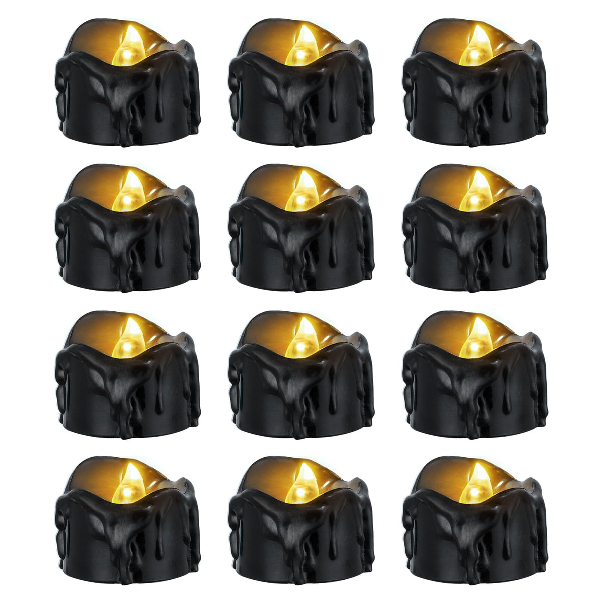 Windshell Black Tealight Candles With Timer, Melting Design (Plastic), Battery Operated Led Flameless Tea Lights For Party, Wedd