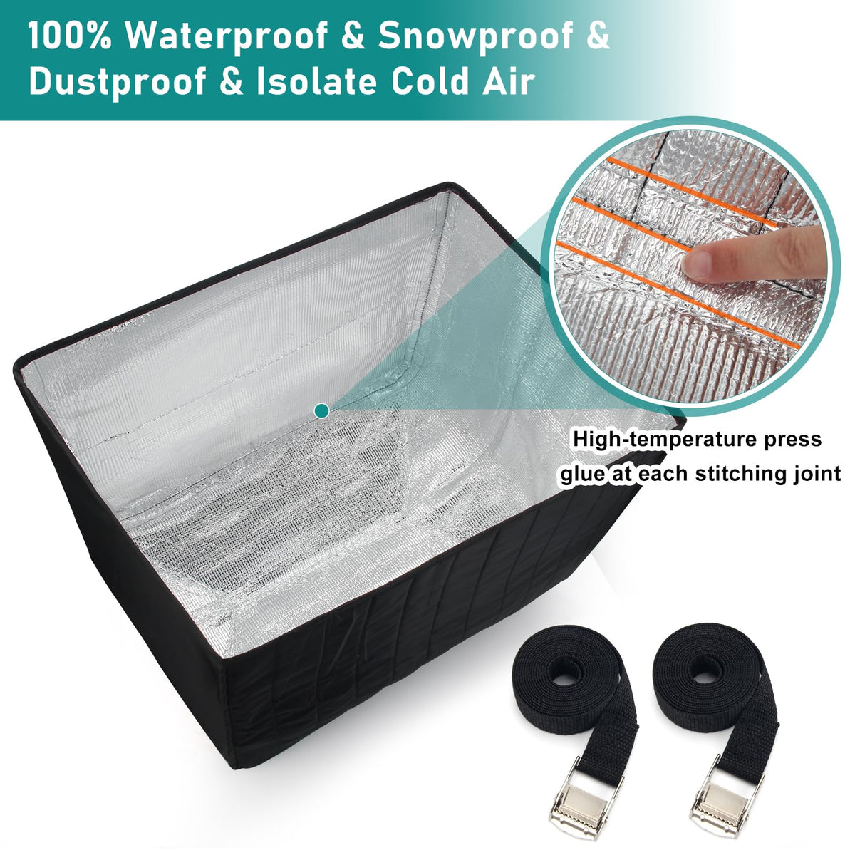 Q: Is this AC cover truly waterproof and snowproof?A: Yes, the cover is made from a 3-layer waterproof material, including high-quality 420D Oxford cloth and a treated stitching design that ensures complete waterproofing and protection against snow.