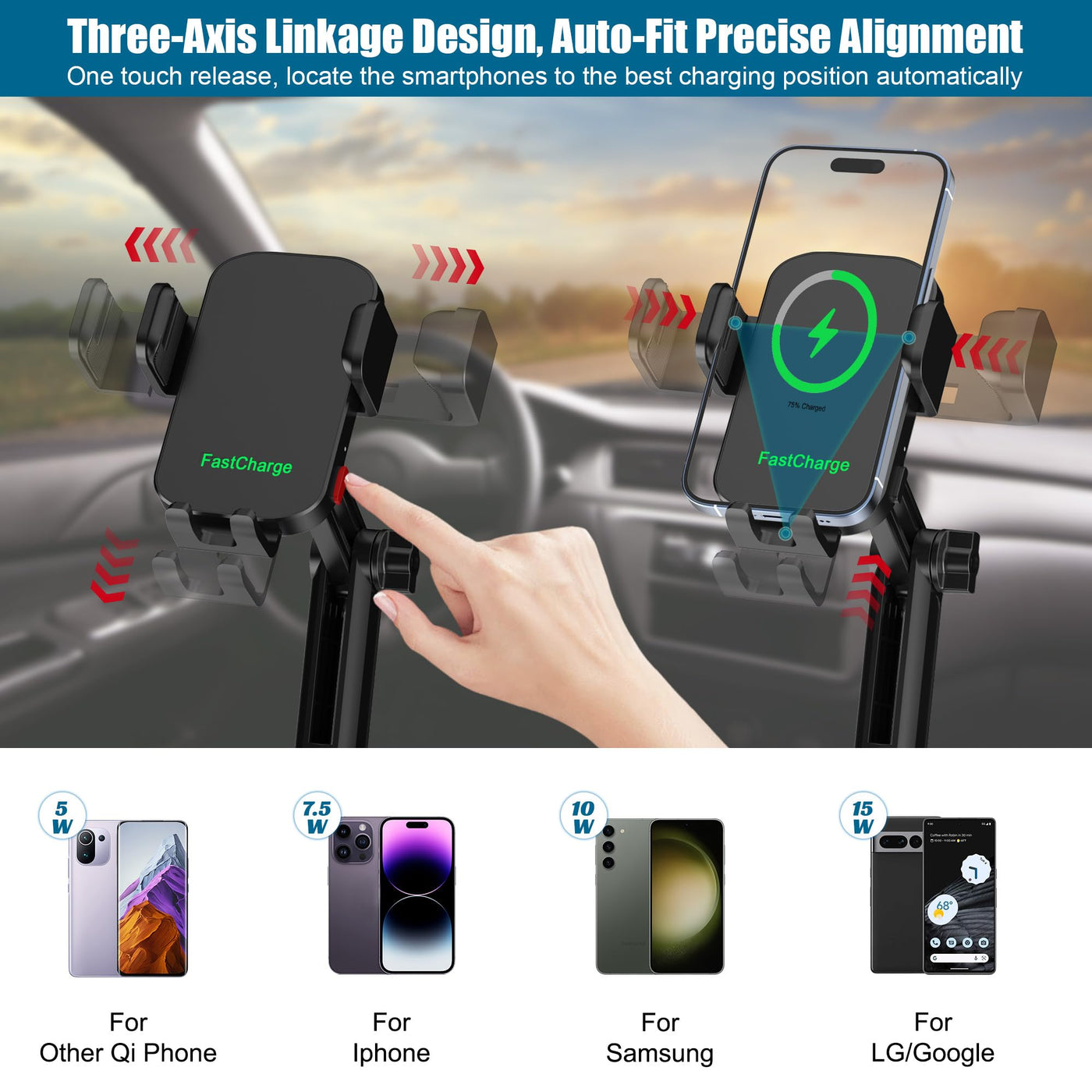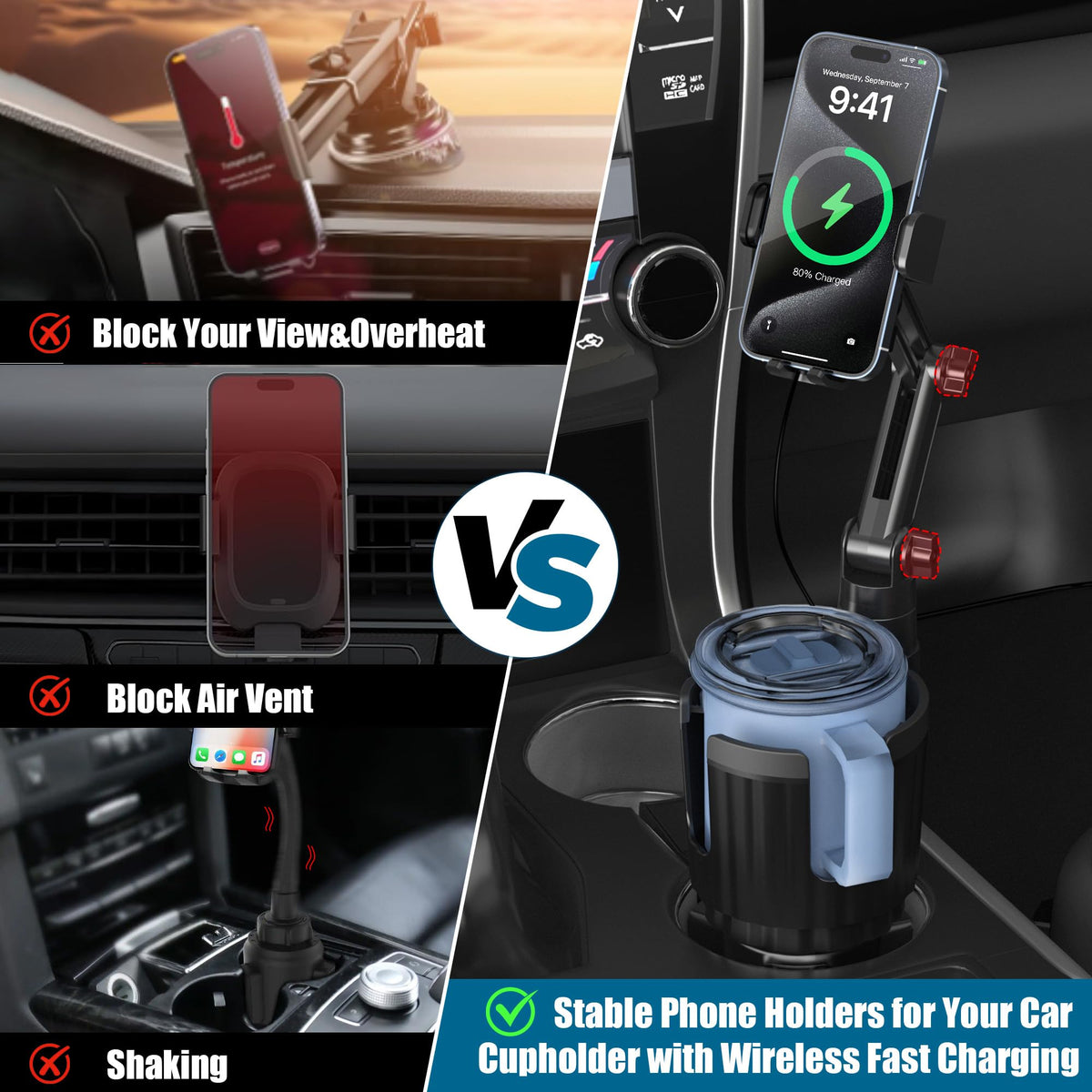 Wireless Car Charger Phone Mount Cup Holder, 3 In 1 15W Fast Charging Auto Clamping Cup Holder Expander For Car, Phone Holders F