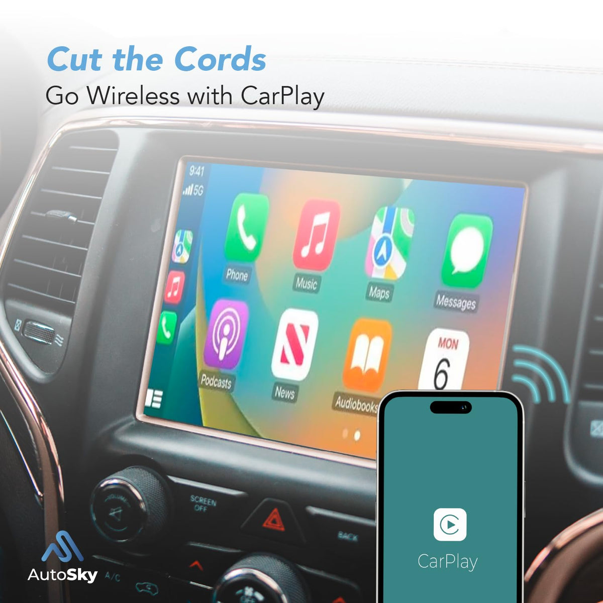 Q: What iPhone models are supported by the AutoSky Wireless CarPlay Adapter?A: The AutoSky Wireless CarPlay Adapter is designed for iPhone 6 and newer models that run on iOS 10 or higher.
