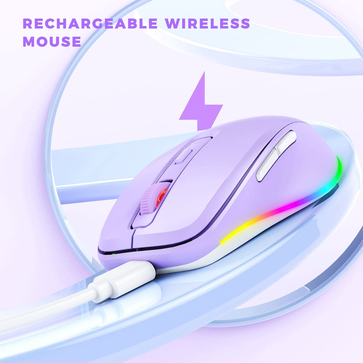 Wireless Mouse, Mouse Jiggler - Led Mouse Rechargeable Computer Mouse With Build-In Mouse Mover Undetectable Random Movement With On/Off Button Keeps Computer Awake - Purple