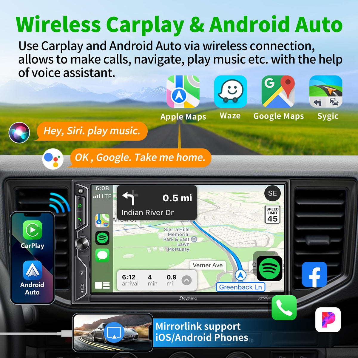 [Wireless Upgrade] Double Din Car Radio With Wireless Apple Carplay And Android Auto, Bluetooth, 4.2 Channel Audio Output, Mirro