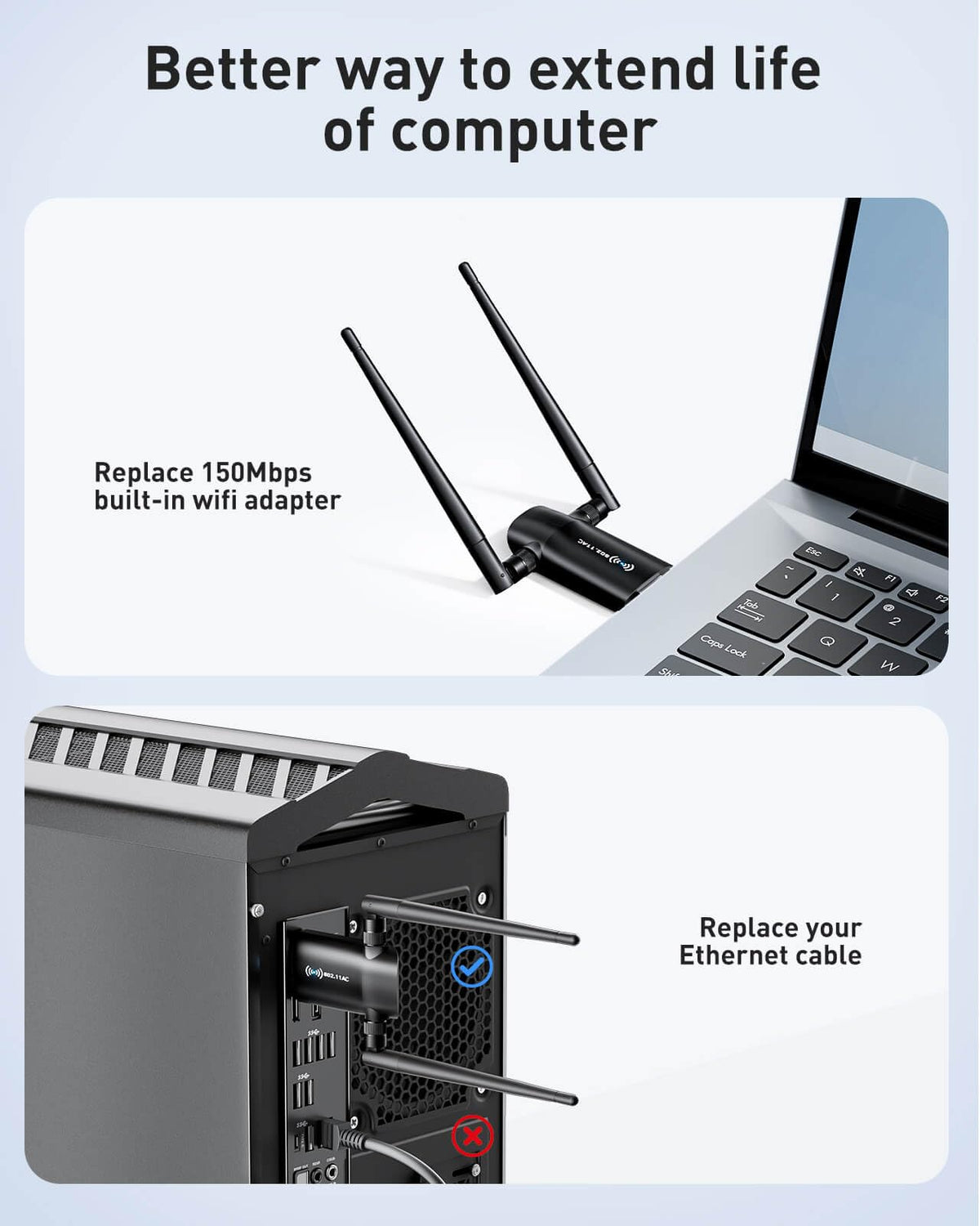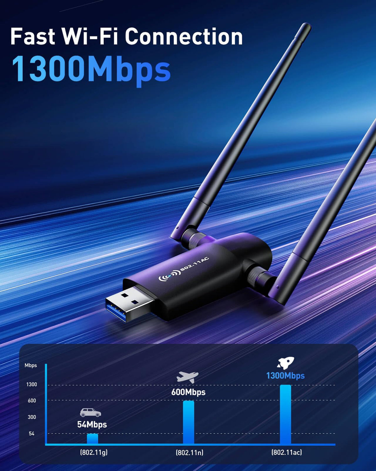 Fast 1300Mbps Usb Wifi Adapter - Nineplus Wifi Adapter Provides Long-Range And Lag-Free And Stable Wifi Connections,Upgrade Your Desktop Or Laptop New Life With Our Ac1300Mbps Usb Wireless Adapter. Whether Your Desktop Pc'S Wifi Usb Is Malfunctioning Or You�Re Looking To Upgrade To Faster Dual-Band 5Ghz And 2.4Ghz Speeds, This Pc Wifi Adapter Is The Ideal Choice. It�S A Budget-Friendly Way To Extend Your Device�S Life And Experience The Benefits Of Modern Wifi Technology. | Dual-Band 5.8Ghz And 2.4Ghz Bands - 5.8Ghz Wifi Connection Speed Up To 867Mbps,2.4Ghz 400Mbps,With These Upgraded Speeds, Web Surfing, Gaming, And Streaming Online Meeting Is Much More Enjoyable Without Buffering Or Interruptions,Experience The High Wi-Fi Speed Of Our Ac1300Mbps Wifi Dongle Delivers Faster Internet Speeds And Stronger, More Reliable Signal Penetration Over Long Distances. It'S A Gigabit Wifi Usb Adapter For Pc Perfect For The Modern User. | Two 5Dbi High Gain Wifi Antenna � The High Gain Antenna Of The Desktop Wifi Adapter Greatly Enhances The Reception And Transmission Of Wifi Signal Strengths.Equipped With Dual High-Gain Pc Wifi Antenna, Our Wifi Dongle For Desktop Pc Ensures Accurate Capture Of Wifi Signals, Providing A Stable And Strong Connection Even At Greater Distances, Ideal For Overcoming Poor Signal Issues In Bedrooms. This Computer Wifi Adapter, Wifi Card, And Usb Wifi Antenna Extend Your Coverage. | Super Speed Usb 3.0 - Wifi Adapter For Desktop Pc Connect Speeds Up To 10X Faster Than Usb 2.0 Usb, Super Usb3.0 Delivers Faster Data Transfer, A More Reliable Network Connection, And Improved Compatibility For Wifi Adapter For Pc. It Fully Supports The High-Speed Demands Of Ac1300 Wireless Adapter, Ensuring Peak Performance. Plus, It'S Backward Compatible With Standard Usb 2.0 Ports For Added Flexibility.Usb Wifi Adapter For Desktop Pc 3.0 | Compatibility Systems: This Wi-Fi Usb Adapter Is Compatible With Windows11/10/8.1/8/7/Xp,Not Supports Mac Os Or Chromebook Or Linux. Most Windows 11/10 Systems Will Automatically Detect And Install The Drivers. If The System Does Not Detect The Driver, You Will Need To Download It From Our Website. For Windows 7, You Will Need To Manually Install The Driver For This Wifi Card.Or You Go To Our Website Online Setup Support,We Do Online Setup For You. | Easy Setup And Online Setup Technical Support - Just Plug And Play The Usb Wifi For Windows 10/11 (No Drivers Required). Excellent Customer Support - We Provide Online Tech Support, Installation Services, And Video Call Guidance. Trust Our Top-Notch Usb Wifi Adapter For Pc Service. Our Technical Team Is Always Ready To Assist You. Whenever You Need Help With The Wireless Usb Wifi Adapter For Pc, You Can Count On Us For Timely Support | We Provide 2-Year Service. We Do New Pcs Replacement For Any Problem Of Wifi Adapter,You Just Need Email Us.We Will Respond To Your Within 24 Hours.Please Contact Us First If You Have Any Problems About The Usb Wireless Network Adapter