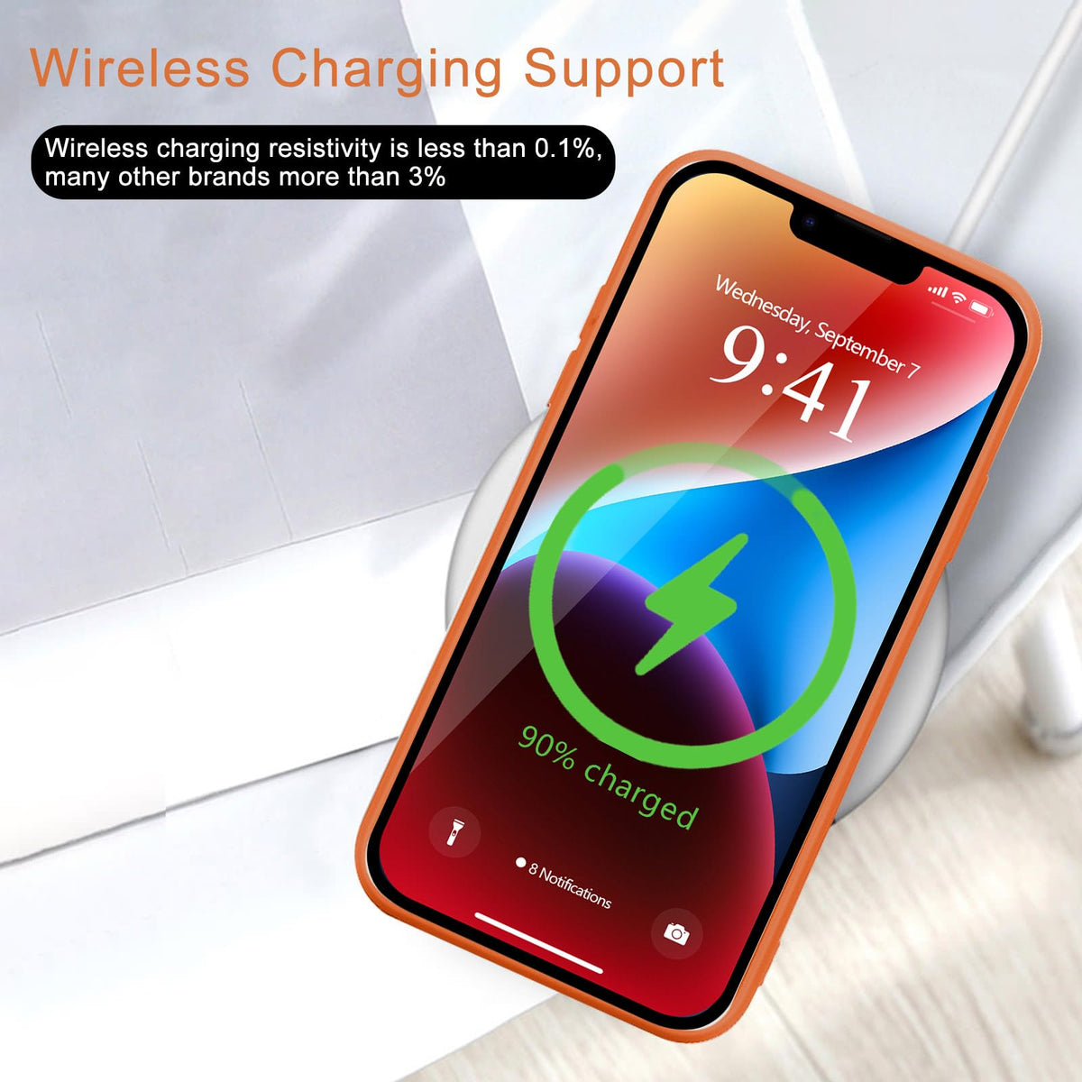 Wirvyuer For Iphone 14 Case Cute Slim Shockproof Phone Case With Wireless Charging Support And Protection, Orange