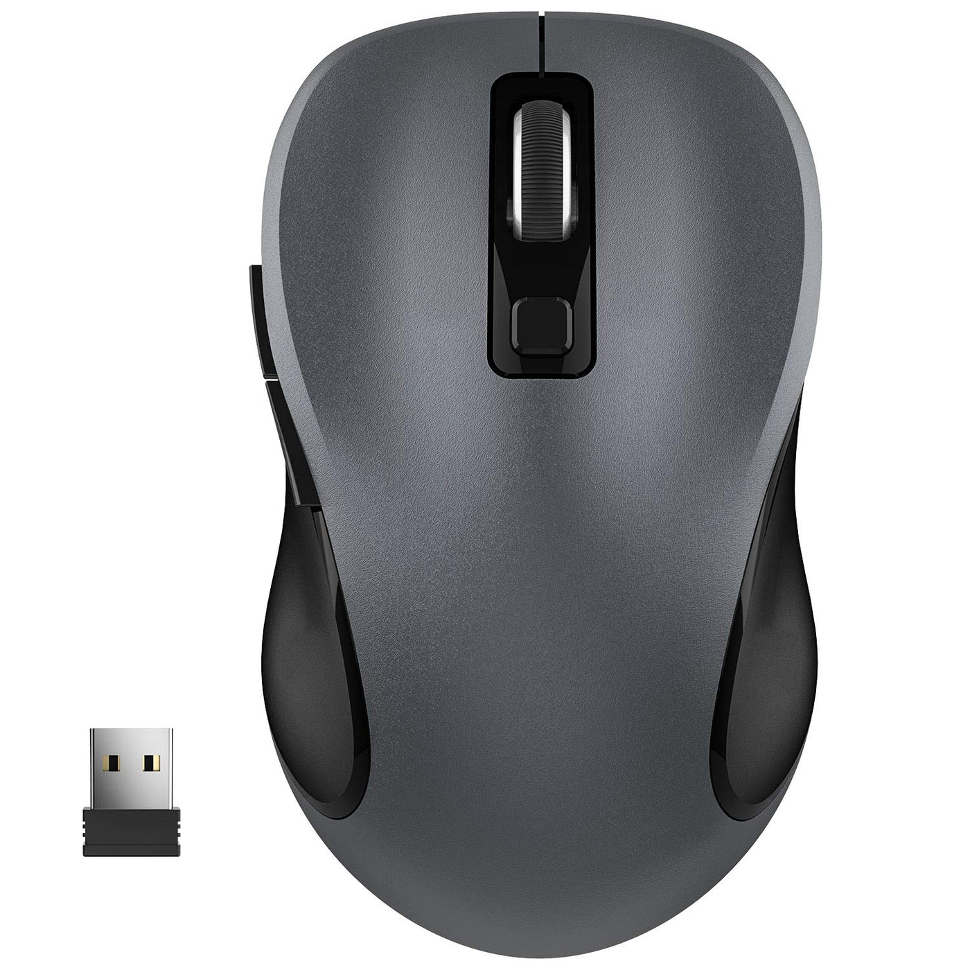Wisfox 2.4G Wireless Mouse For Laptop, Ergonomic Computer Mouse With Usb Receiver And 3 Adjustable Levels, 6 Button Cordless Mouse Wireless Mice For Windows Mac Pc Notebook (Grey)