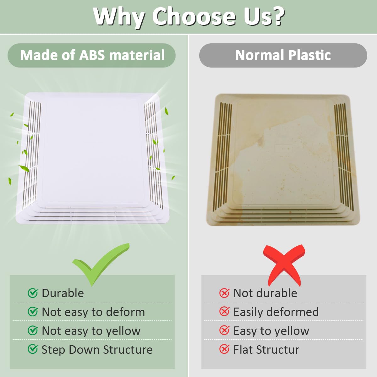 Q: Is the WKZO bathroom fan cover easy to clean?A: Yes, the WKZO bathroom fan cover is easy to clean. Its plastic material allows for quick dusting and wiping, helping to maintain cleanliness and hygiene in your bathroom. Regular cleaning can enhance the cover's durability and functionality.