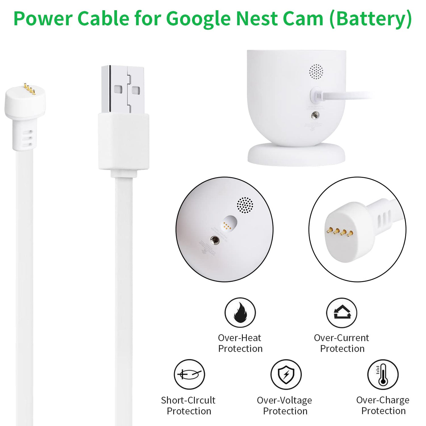 Power Cable Compatible With Google Nest Cam Outdoor Or Indoor, Battery - 2Nd Generation