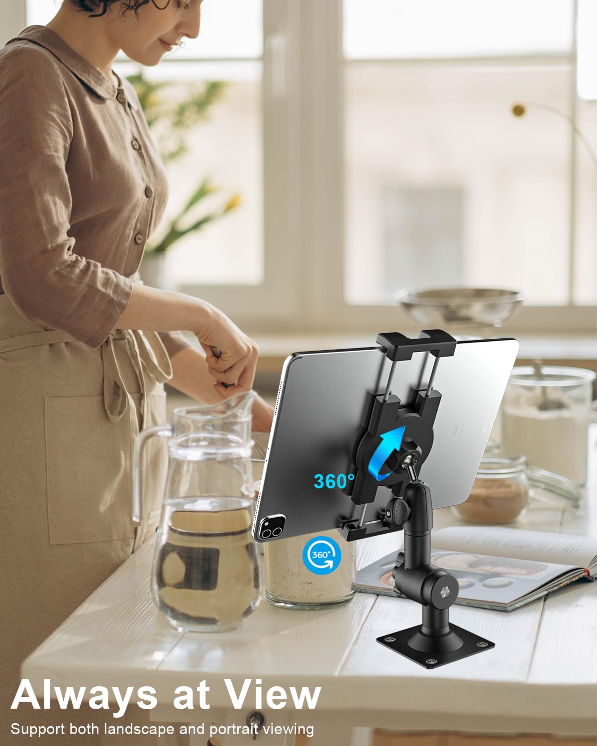 Woleyi Tablet Wall Mount For Ipad - [360 Adjustable Arm] Tablet Holder Stand For Kitchen Cabinet, Under Counter, Desk, For 4-13'