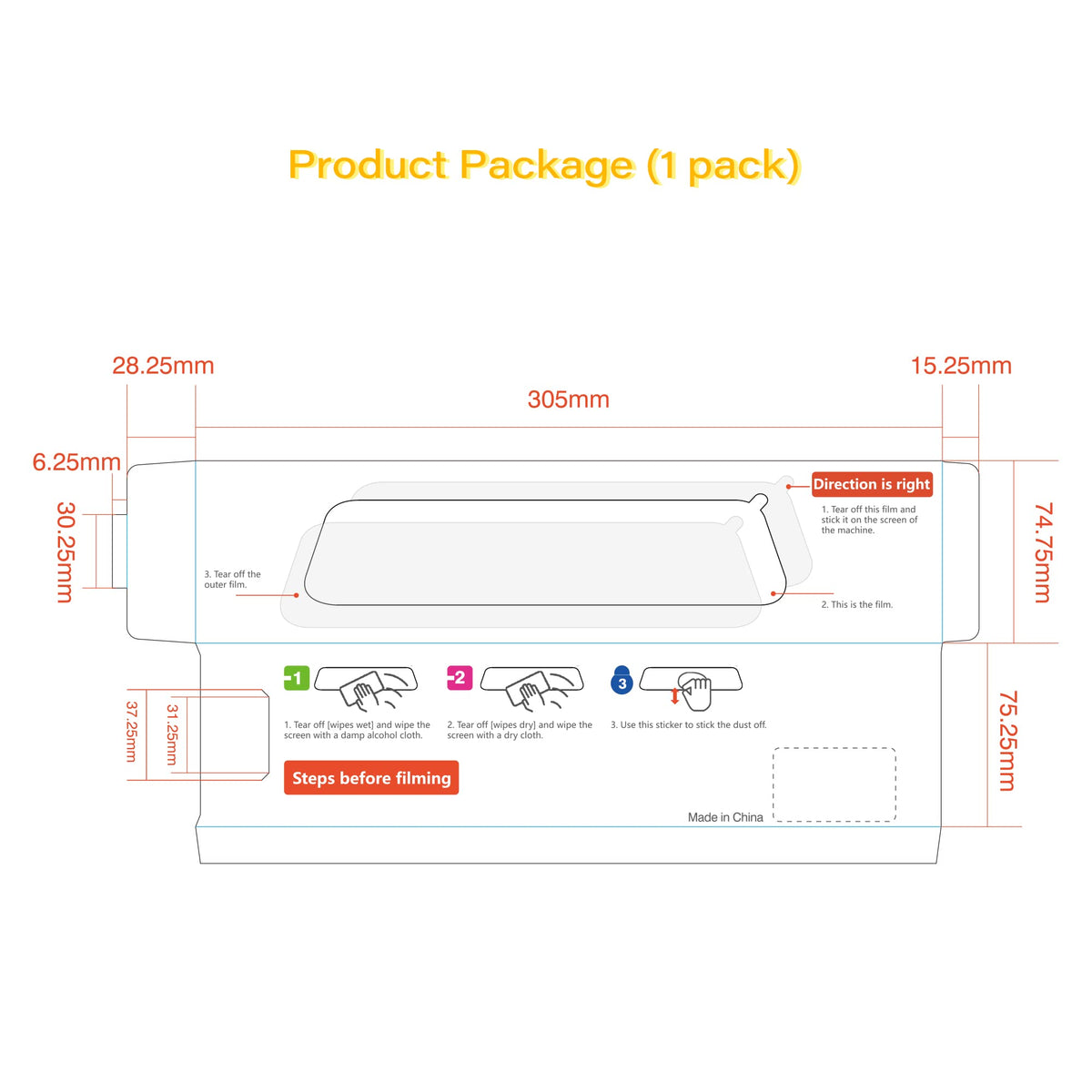 Wolfbox 12Inch Pet Anti Glare Film For Rear View Mirror Camera, Interior Rearview Mirror Anti Glare Membrane Anti Scratch Sticke