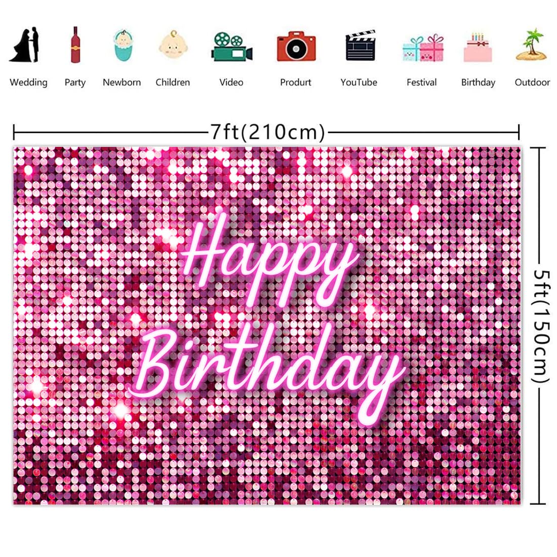 Q: What are the dimensions of the Wollmix Hot Pink Happy Birthday Backdrop?A: The Wollmix Hot Pink Happy Birthday Backdrop measures 7x5 feet (2.1m wide x 1.5m high), making it suitable for various occasions like birthday parties and photography sessions.