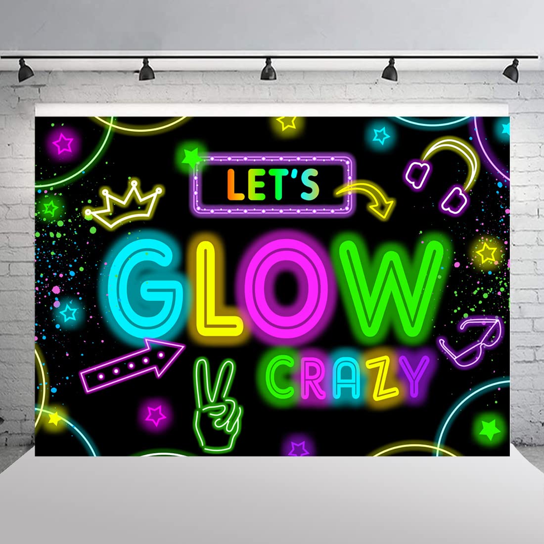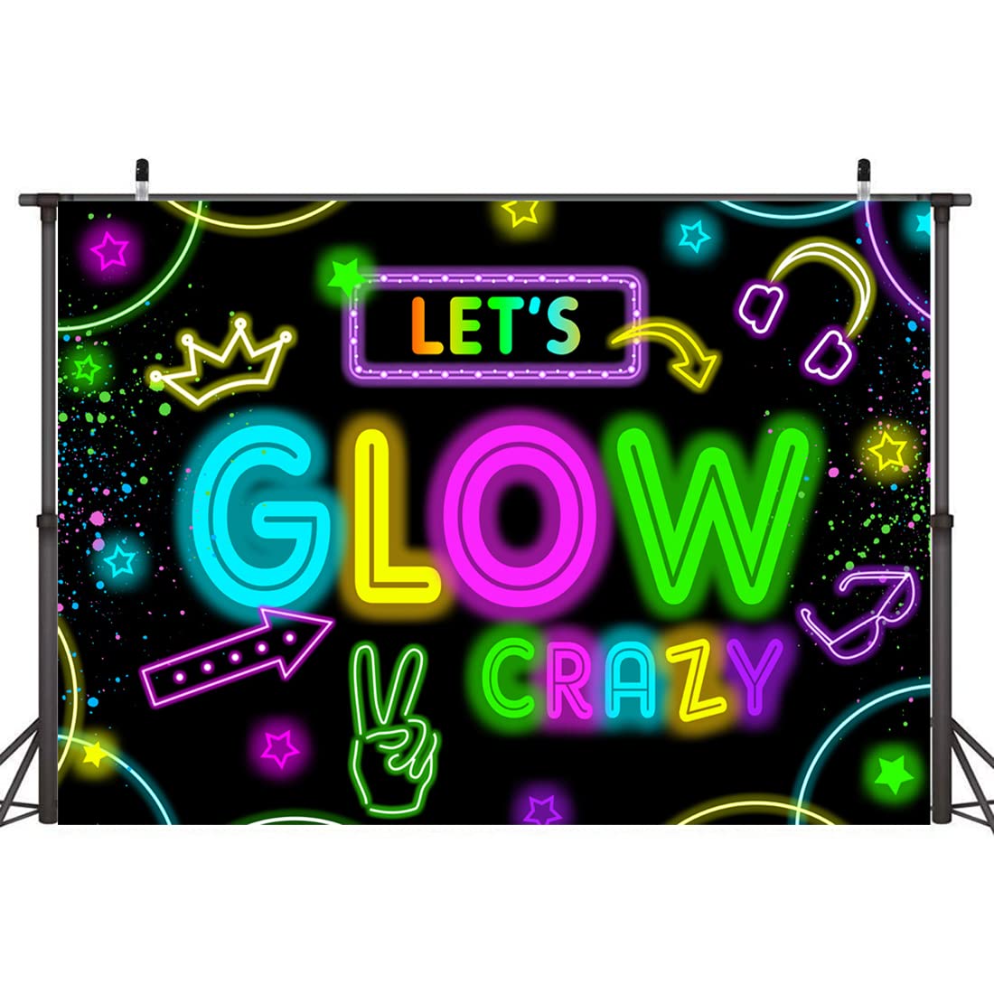 Wollmix Neon Glow Party Decorations Supplies Backdrop 7X5Ft Glow In The Dark Lets Glow Banner Photography Background Birthday Sl