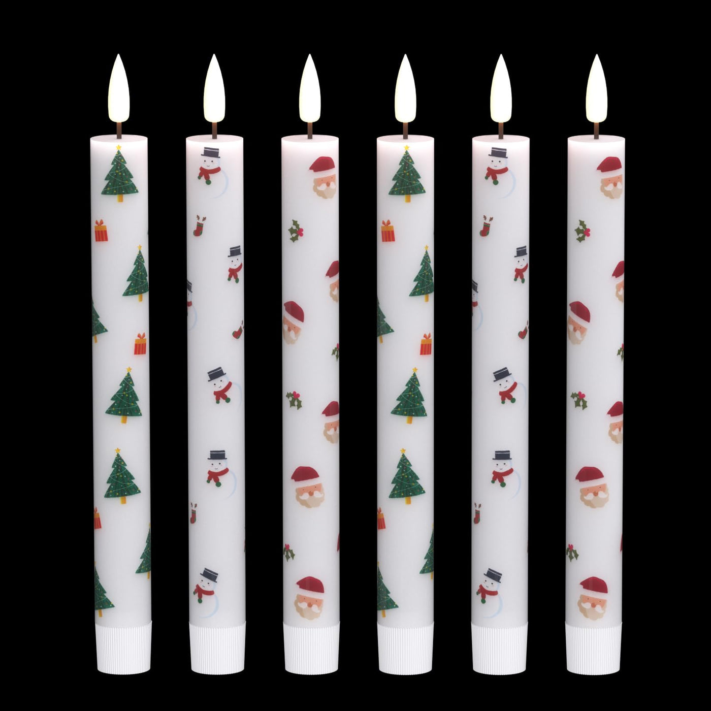 Wondise Christmas Flameless Taper Candles With Timer, 6 Pack Battery Operated Led Flickering Real Wax Flameless Candles For Christmas Wedding Dinner Decorations
