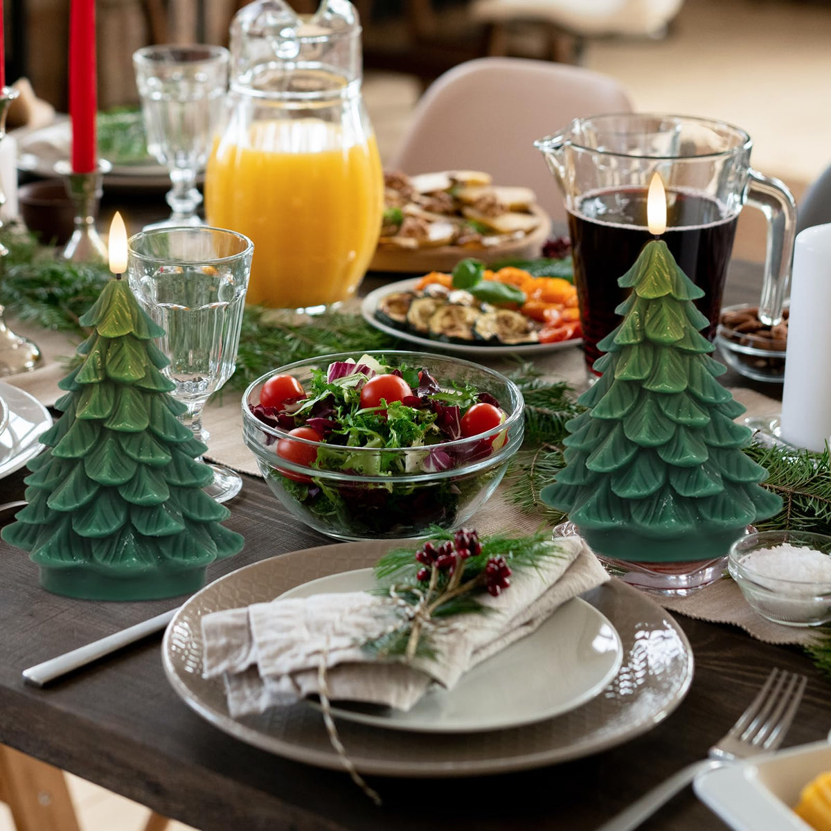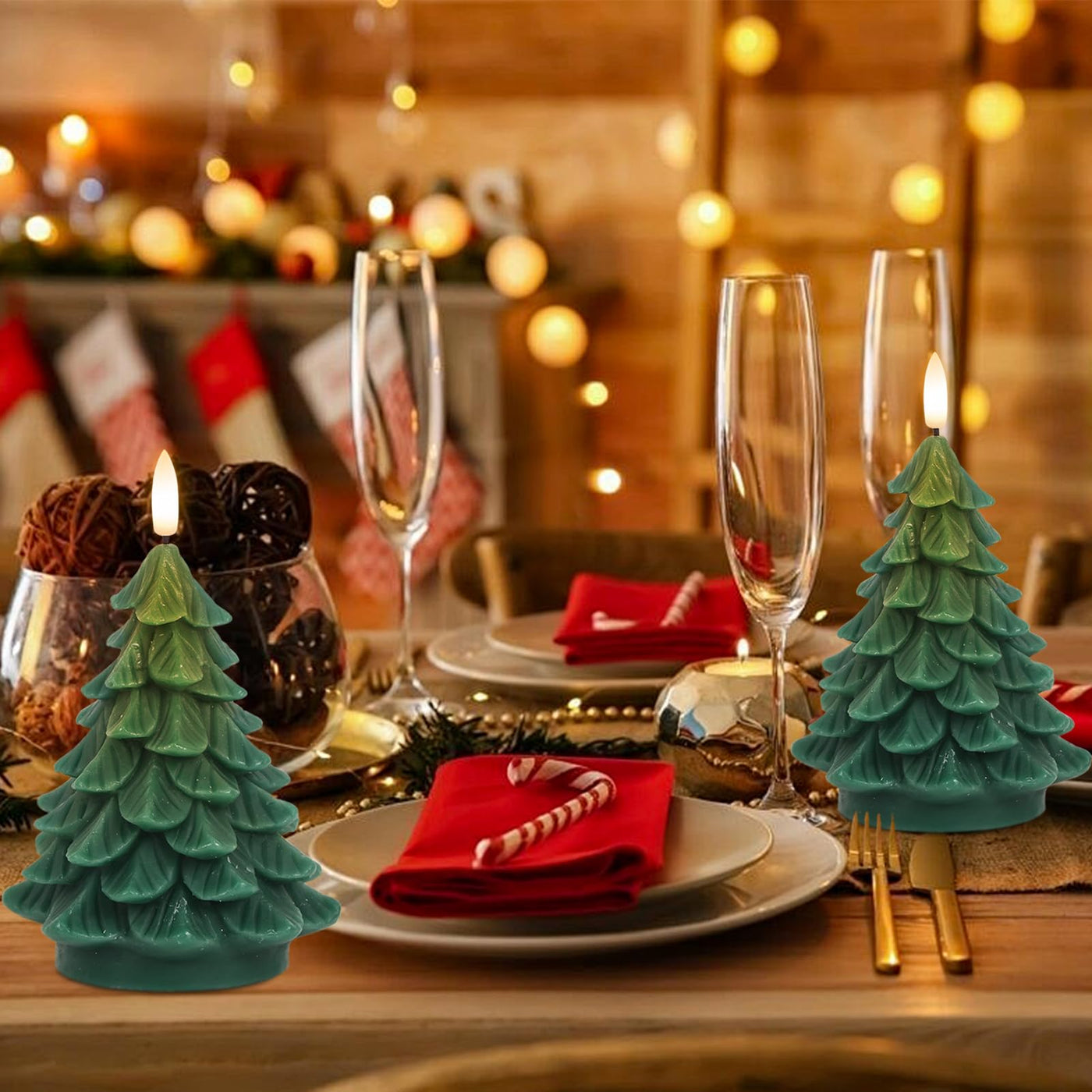 Wondise Christmas Tree Flameless Candles Timer, Real Wax Battery Operated 3D Wick Led Flickering Candles Realistic Christmas Tree For Christmas Holiday Indoor Dinner Decor(3'' X 7.1'')