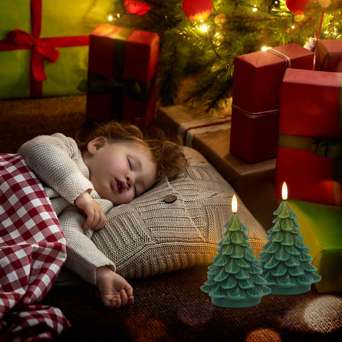 Wondise Christmas Tree Flameless Candles Timer, 2 Packs Green Real Wax Battery Operated 3D Wick Led Flickering Candles Realistic