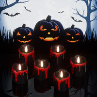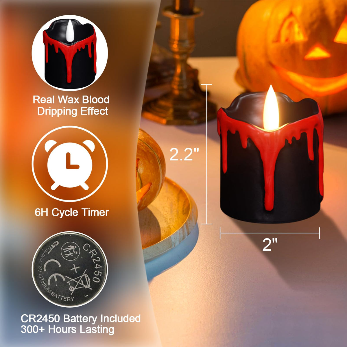 Wondise Halloween Black Flameless Candles With Timer, Battery Operated Votive Candles Tea Light With Blood Dripping Real Wax 3D