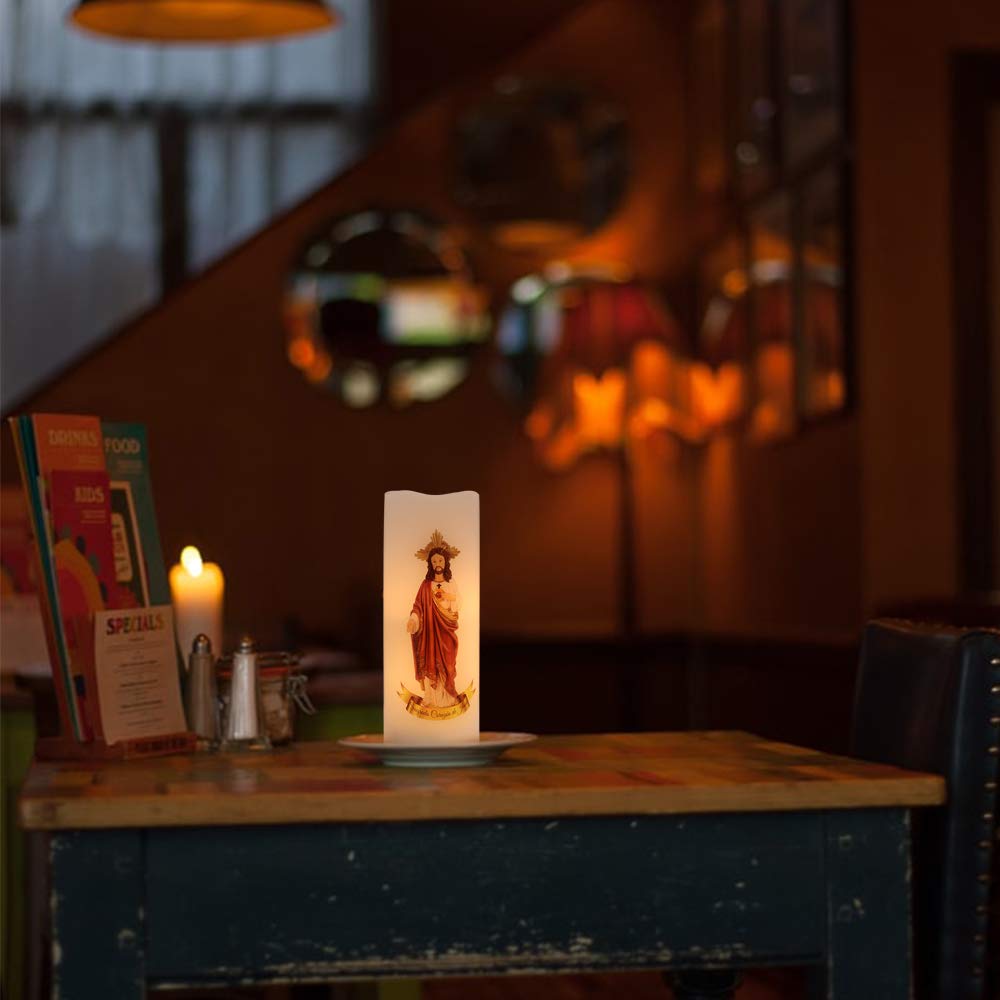 Wondise Sacred Heart Of Jesus Picture Devotional Prayer Candle With Remote And Timer, Battery Operated Real Wax Led White Candle