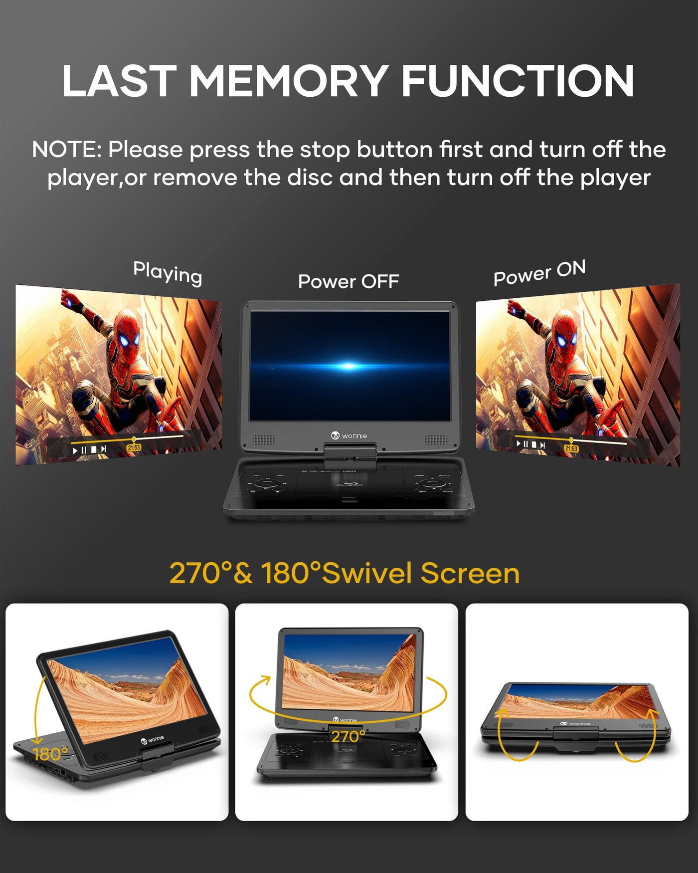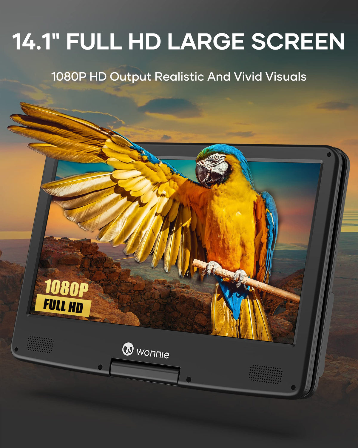 Wonnie 16.9 Portable Blu Ray Dvd Player With 14.1 1080P Hd Swivel Screen, 4-Hour Rechargeable Battery, Supports Hdmi Output, Surround Audio, Last Memory, Usb/Sd Card, Av In