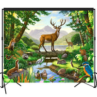 Woods Animals Deer By Lake Scenic Backdrop Large Banner Photography Studio Fabric Background Photobooth Prop 7X6Feet #2210