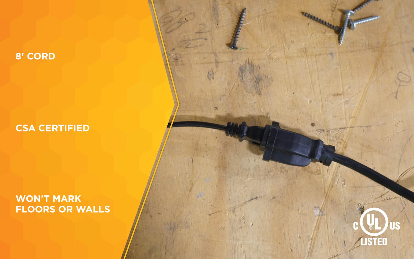 Product Descriptionmanufactured With Stranded And Cabled Copper Conductors And Solid Moulded Plugs For Longer Life. Outer Jacket Wont Mark Floors Or Walls. 300 Volt Wire Rating. Sleeved.From The Manufacturerwoods 260 16/3 Sjtw General Purpose Extension Cord, Black, 8-Foot. Rated To 13-Amps. This Vinyl Outdoor Extension Cord Is Helpful All Around The House. It Has A Vinyl Jacket And Reinforced Blades Help Avoid Accidental Bending Or Breakings. Moulded Plugs And Heavy-Duty Strain Relief Protects Electrical Connections Resulting In Longer Cord Life. Outer Jacket Won'T Mark Floors Or Walls. This Cord Is Recommended For General Indoor/Outdoor Use. And Is Ul Listed, Cul Listed, Etl Listed, And Meets Osha Requirements For Outdoor Use.