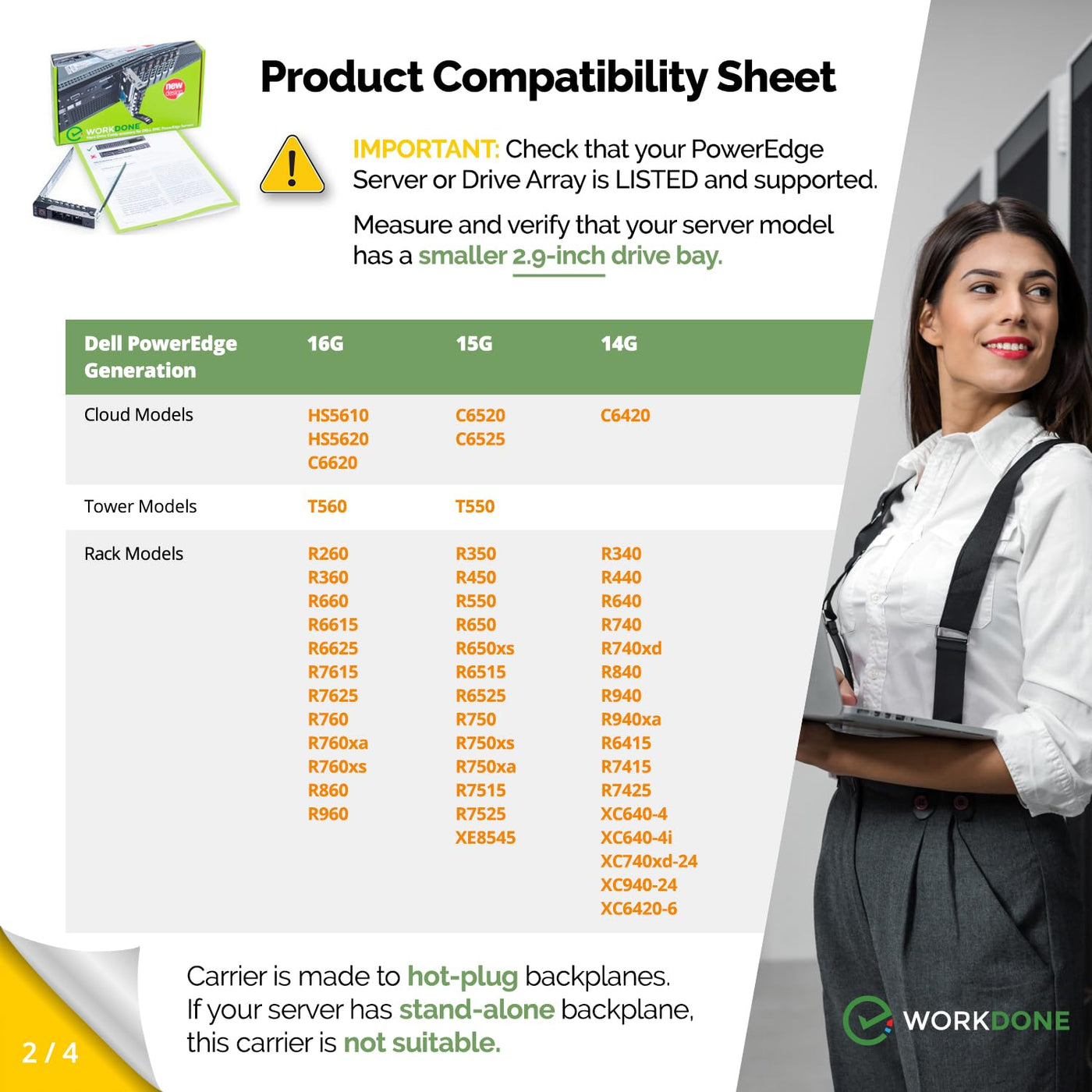 Workdone 2.5'' Hard Drive Caddy Compatible For Dell Poweredge Servers 14Th Generation R440 R640 R740 R740Xd R840 R940 R6415