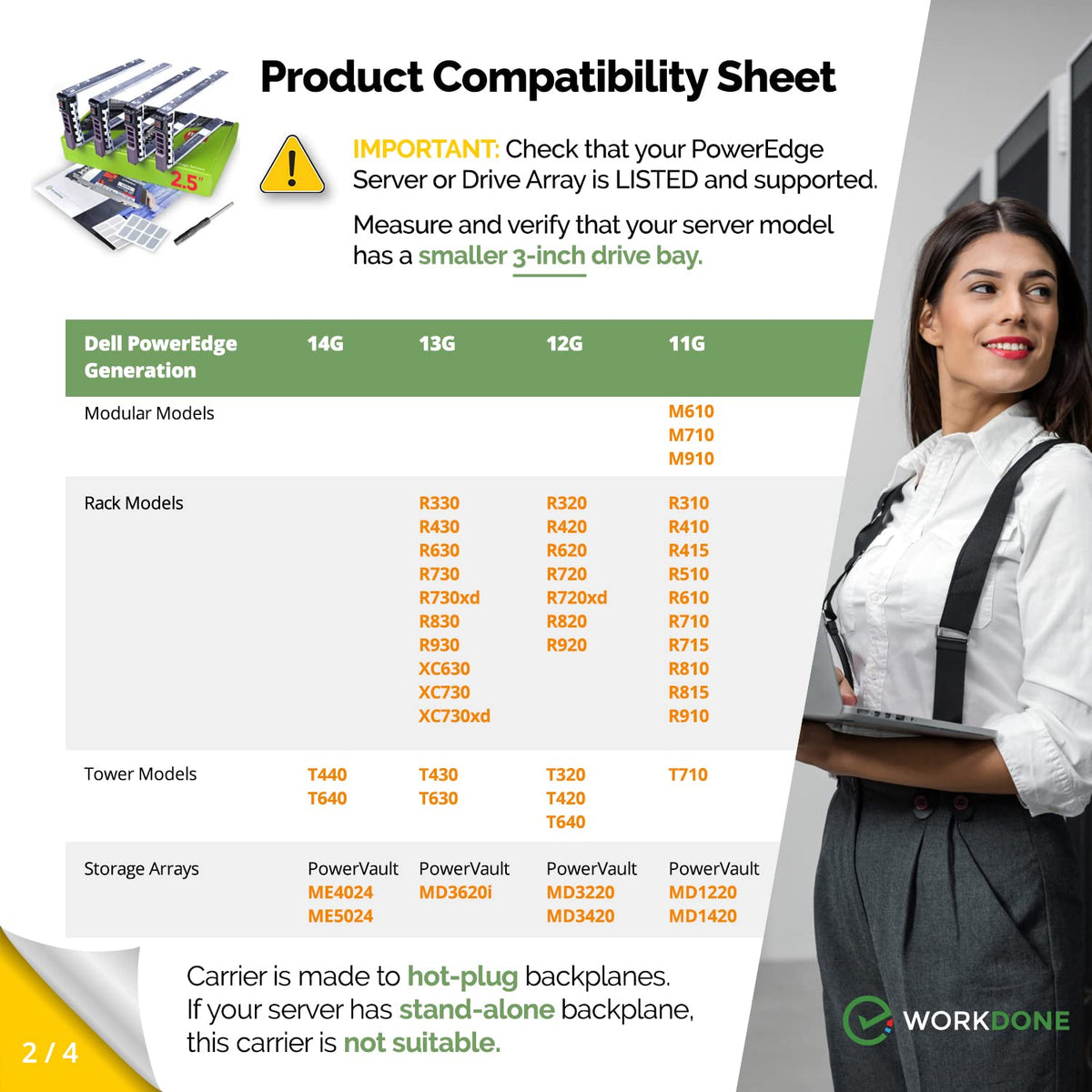 Workdone 4 Pack 2.5'' Hard Drive Caddy G176J Compatible For Dell Poweredge Server T440 T640 R330 R430 T430 R630 T630 R730 R8