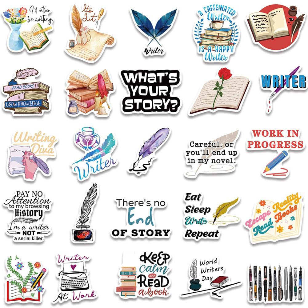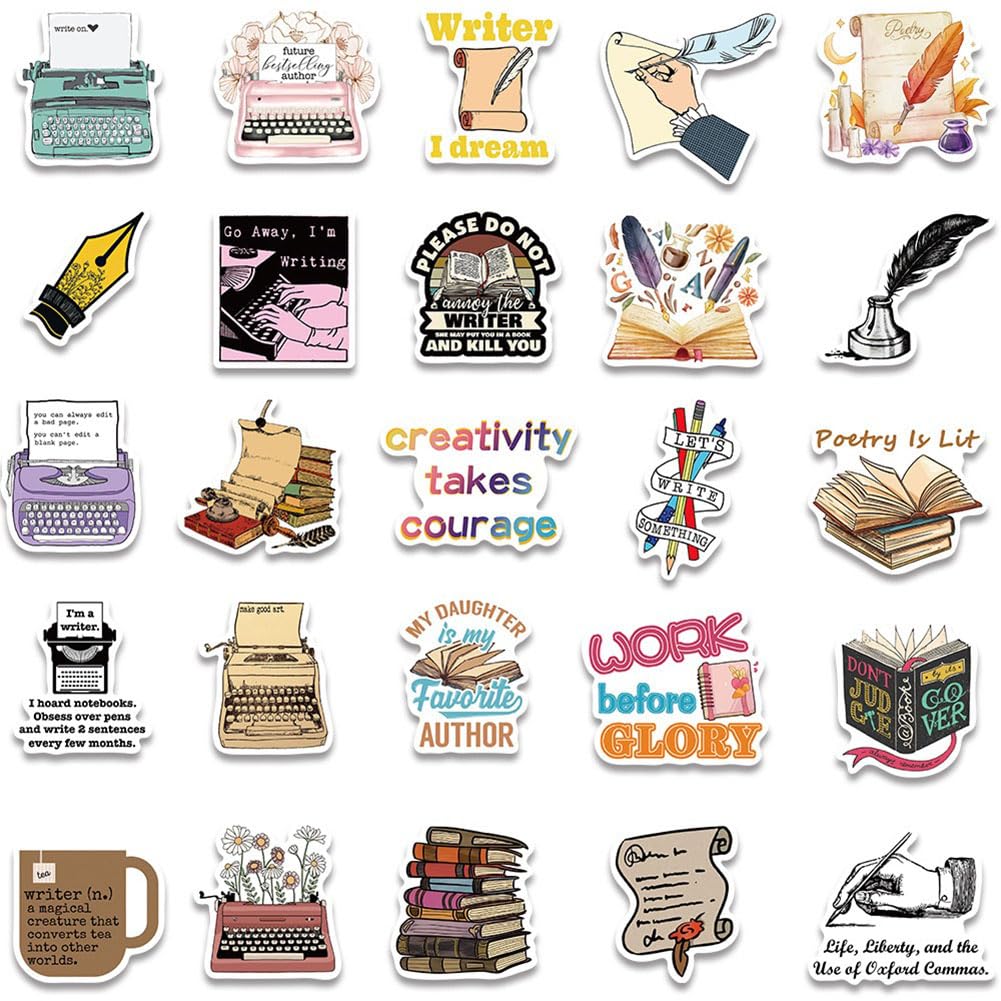 Writer Stickers |50Pcs Author Waterproof Vinyl Decals For Water Bottles Laptop Luggage Cup Mobile Phone Computer Skateboard Refr