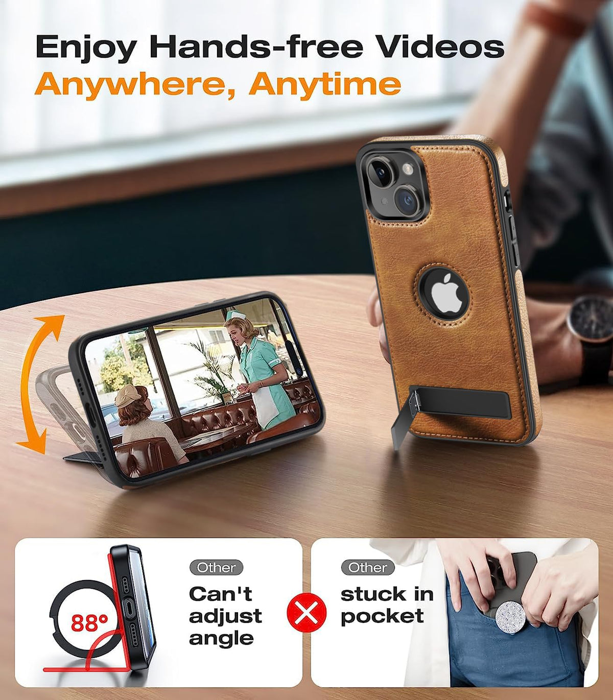 Wtcase Magnetic For Iphone 15 Leather Case,Built In Invisible Stand [Compatible With Magsafe] Protective Slim Kickstand Phone Co