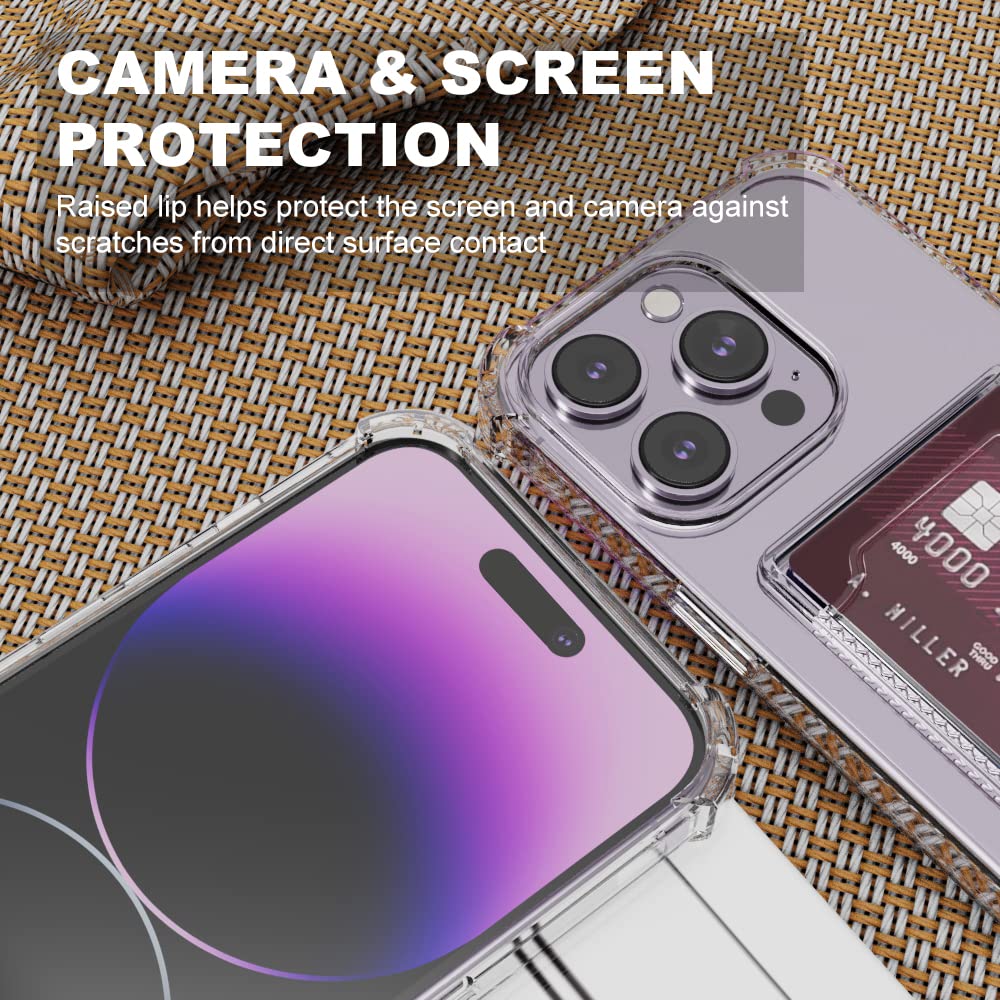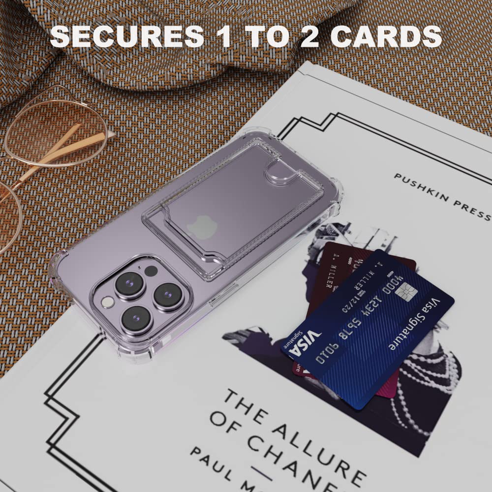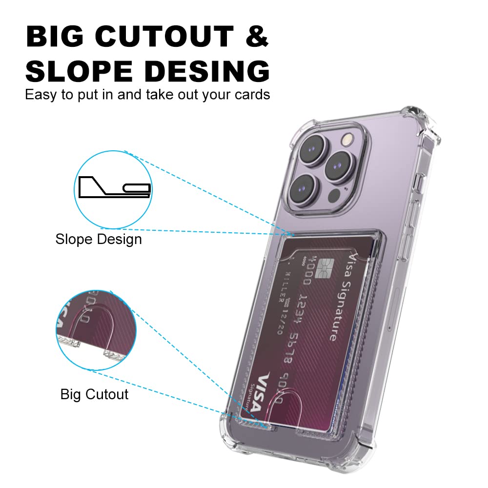 Wuwedo ?Upgrade? For Iphone 14 Pro Max Crystal Clear Card Case, [Slim & Protection][Up To 2 Cards] Anti Yellowing Flexible Tpu W