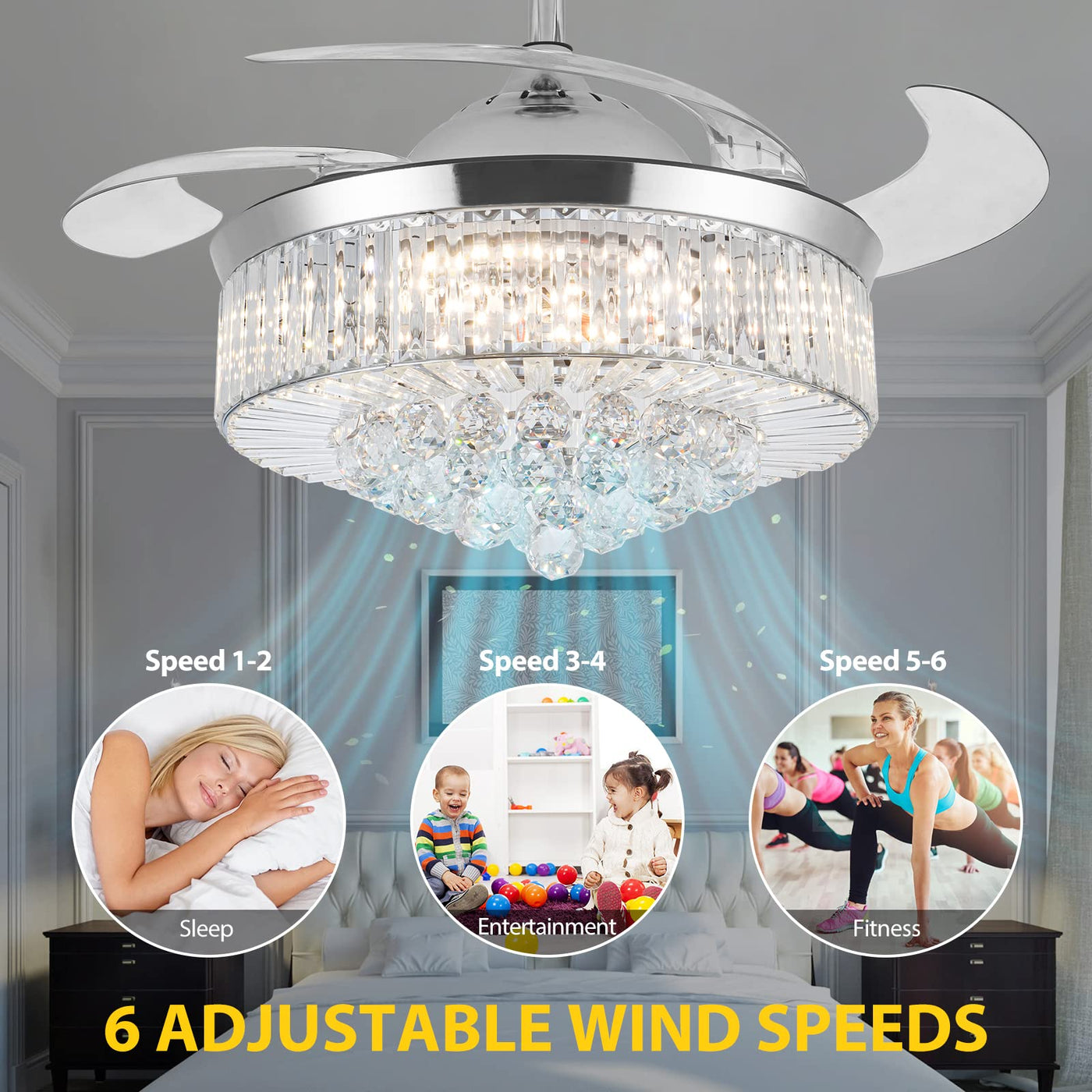 Style: Moderncolor:Silverproduct Name: Led Ceiling Lightmaterial: Metal+Abs+Acrylic42 Inches / Diameter 108Cmblade Expansion Diameter Is: 108Cmlamp Shade Diameter:49Cmlamp Fixture Height:40Cm(Szie Included 10Cm Down Rod)Down Rod:One 12.5Cm And One 25Cm(You Can Choose The Suitable One To Install)Source: Led Light(Included)Voltage: 110Vpower:40Wirradiated Area: 20-30M ^ 2Switch: Remote Controlthe Fan Speed And Light Can Be Controlled Separately By A Remote Control, Can Work Separately As You Prefer, White Light, Neutral Whitelight And Yellow Light, Off-High-Mid-Low Switch For Fan Speed.And Timing Function.Application Areas: Living Room, Dinning Room,Bedroom, Hall, Hotel Rooms.Note:This Fan Needs Basic Assembly, Professional Would Be Highly Recommended.