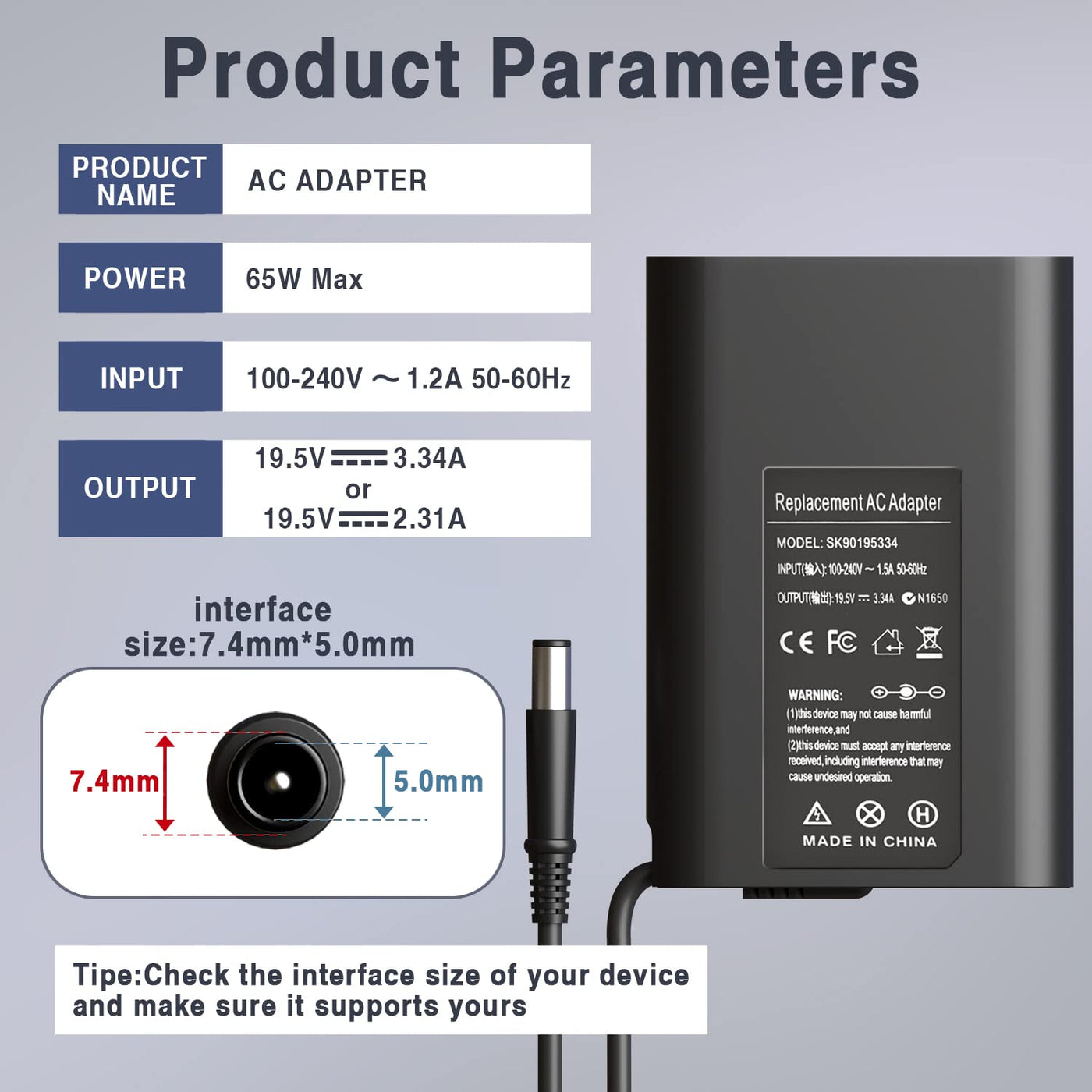 This 65W 19.5V 3.34A Laptop Charger Has Been Tested Ensuring Compatible With A Series Of 65W Dell Laptop Models Which The Connector Round Tip Is (7.4Mm And 4.5Mm). [Please Use ''Ctrl + F'' To Find Your Model] Compatible With Dell Laptop Models: Dell Latitude X1, X300, Xt, Xt Tablet Pc, Xt2, Xt2 Xfr Dell Latitude 5300 5400 5500 7300 7400 7480 5480 5580 Dell Latitude 3150 3330 3340 3350 3440 3450 3480 3540 3550 5280 5290 Dell Latitude 5430 5440 5450 5480 5490 5500 5530 5551 5580 5590 Dell Latitude 6230 6430 6440 6450 6510 6520 6530 6540