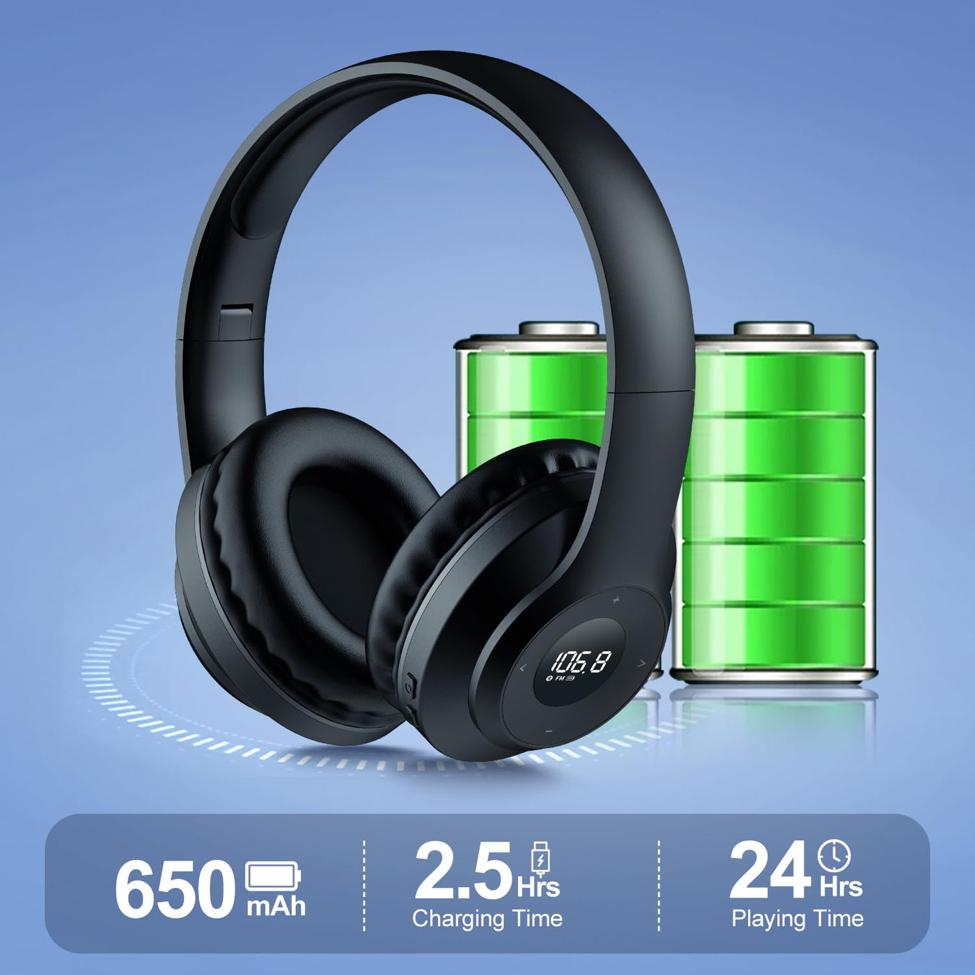 X5 Rechargeable & Portable Fm Radio Headphones With Best Reception,Led Display,Soft Ear Muffs, Fm Headset Radio Receiver For Mee