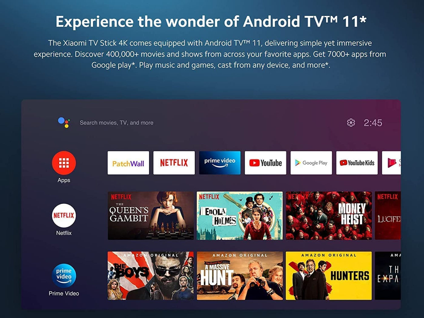 Xiaomi Mi Tv Stick 4K Hd Streaming Device, Powered By Android Tv 11, Google Assistant Voice Remote, Chromecast Built-In, 2022 Latest