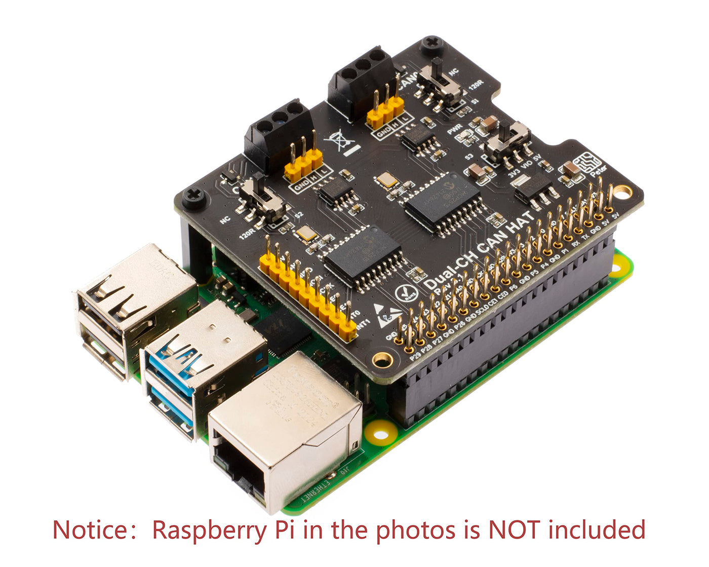 Xicoolee Dual Ch,Can Bus Expansion Hat For Raspberry Pi, With 2 Channel Can Interface Communication, Dual Chips Mcp2515 And Ata6