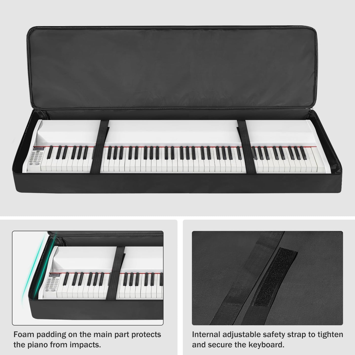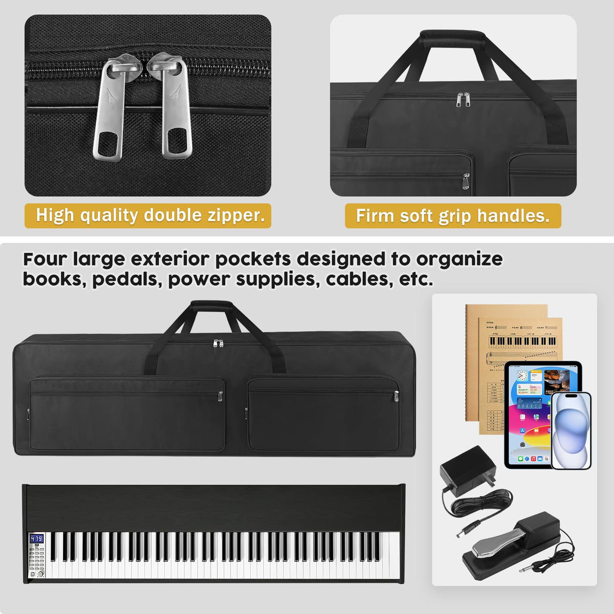 Xidihf 88 Key Keyboard Case Full Padded Piano Gig Bag With Adjustable Shoulder Straps, 4 Storage Pockets For Accessories, 53.9