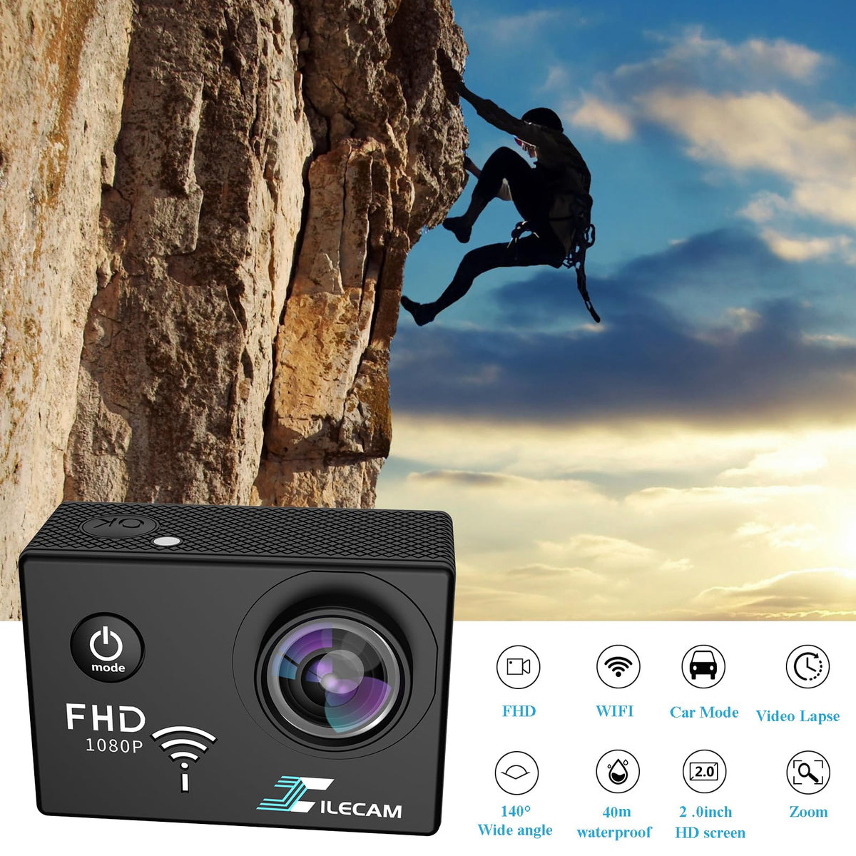 Xilecam Action Camera 1080P Wifi Sports Camera 4Xzoom Action Camera 40M/131Ft Underwater Waterproof With 2 X1050 Mah Batteries A