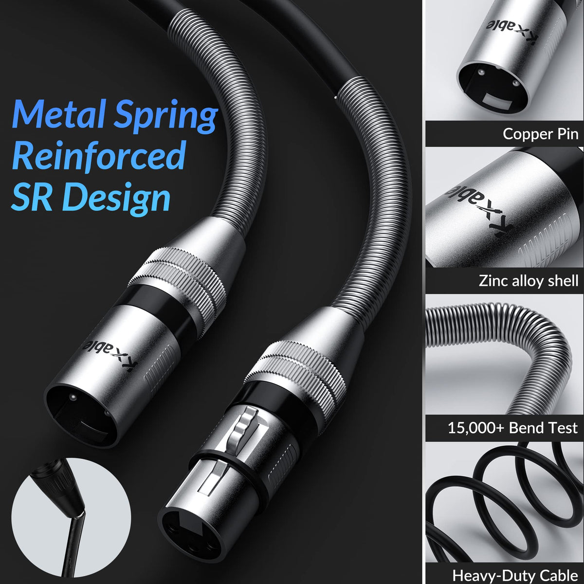 Hi-Fi Heavy-Duty Xlr Cable Kxable Xlr Cable Features 22Awg Pure Copper Wire As The Conductor, Which Greatly Improves The Performance Of The Conductor. Provide You With A Hearing Feast With High Fidelity Sound, No Noise, High Fidelity And No Electrostatic Interference. Kxable Xlr Cable Uses Zinc Alloy Shells, High-Elastic Pvc Jacket And Metal Spring Sr Design (More Flexible And Durable, Never Rupture). Self-Locking Male To Female Connector Design (Easy To Pull Out, Insert And Firmly Lock). These High-Quality Materials Make This Xlr Cable Has Hi-Fi Sound Quality And Excellent Texture.