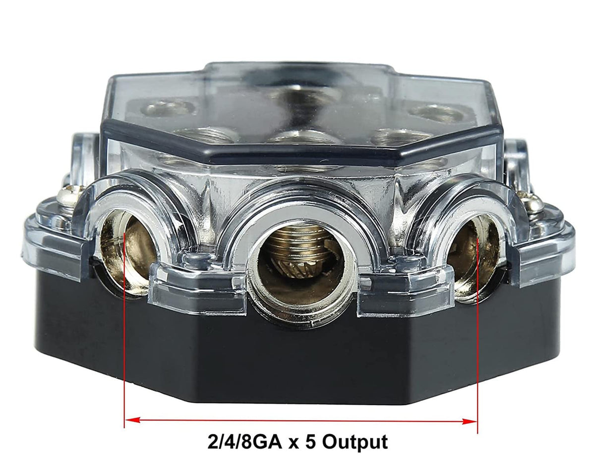 Xmhf Power Distribution Block Car Auto Audio Amplifier Vehicle 1 In 5 Ways Out 0/2/4 Gauge In 2/4/8 Gauge Out Amp Power Ground D