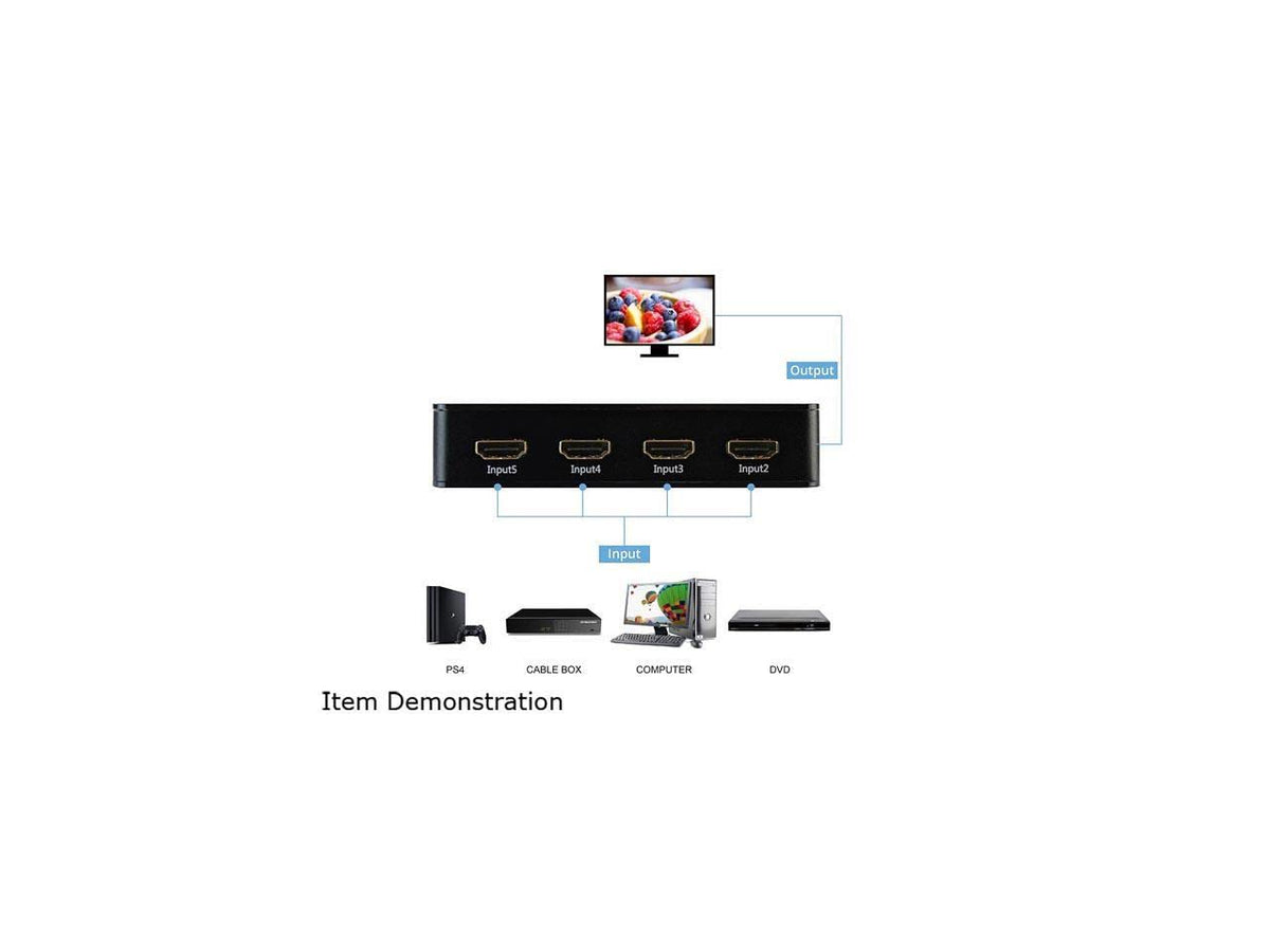 This Product Has 12 Months Replacement We Focus On Providing Quality Power Products And Excellent Customer Service Xtrempro Hdmi Switch Ultra Slim 5X1 Ports, 5 In 1 Out Aluminium Switch W Ir Remote & Ac Adapter, Supports Hdtv, 4K2K 1080P, 720P, Full 3D For Ps, Xbox, Nintendo, Projector - Black (11007) Introduction: This Is An Intelligent 4K2K Hdmi 5X1 Amplifier Switcher It Allows 5 Hdmi Source Devices Switched To 1 Hd Monitor Or Projector Features: Aluminum And Plastic Housing Multi-Switching Methods: Intelligent, Ir Remote Or By Touch Button Supports Highest Video Resolution Up To 4K2K Supports 340Mhz 3 4Gpbps Per Channel(10 2Gpbps All Channel) Bandwidth Supports 16Bit Per Channel (48Bit All Channel) Deep Color Hdcp Pass-Through Supports Uncompressed Audio Such As Lpcm Supports Compressed Audio Such As Dts Digital Supports 3D All Format, Including1080P@23 9824Hz, 720P@59 9450Hz Easy To Use And Carry Package Contents: Hdmi Switch Quick Installation Guide Ac Adapter: 100 240V 5060Hz, 0 4A, Output: 5 0V
