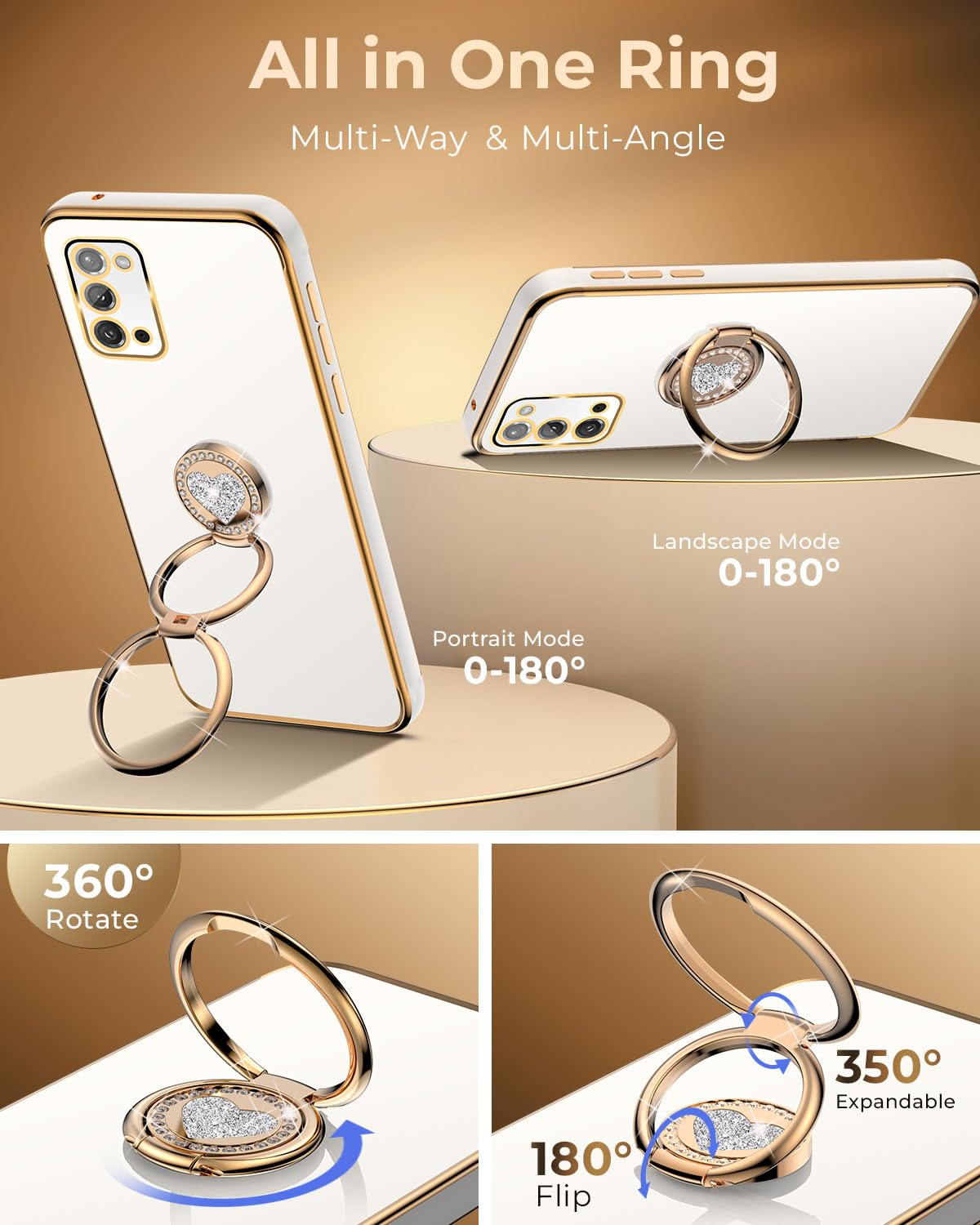 Xyz For Galaxy Note 20 Case With Stand, For Samsung Galaxy Note 20 Case With Double Ring,Women Girls Cute Love Heart Luxury Blin