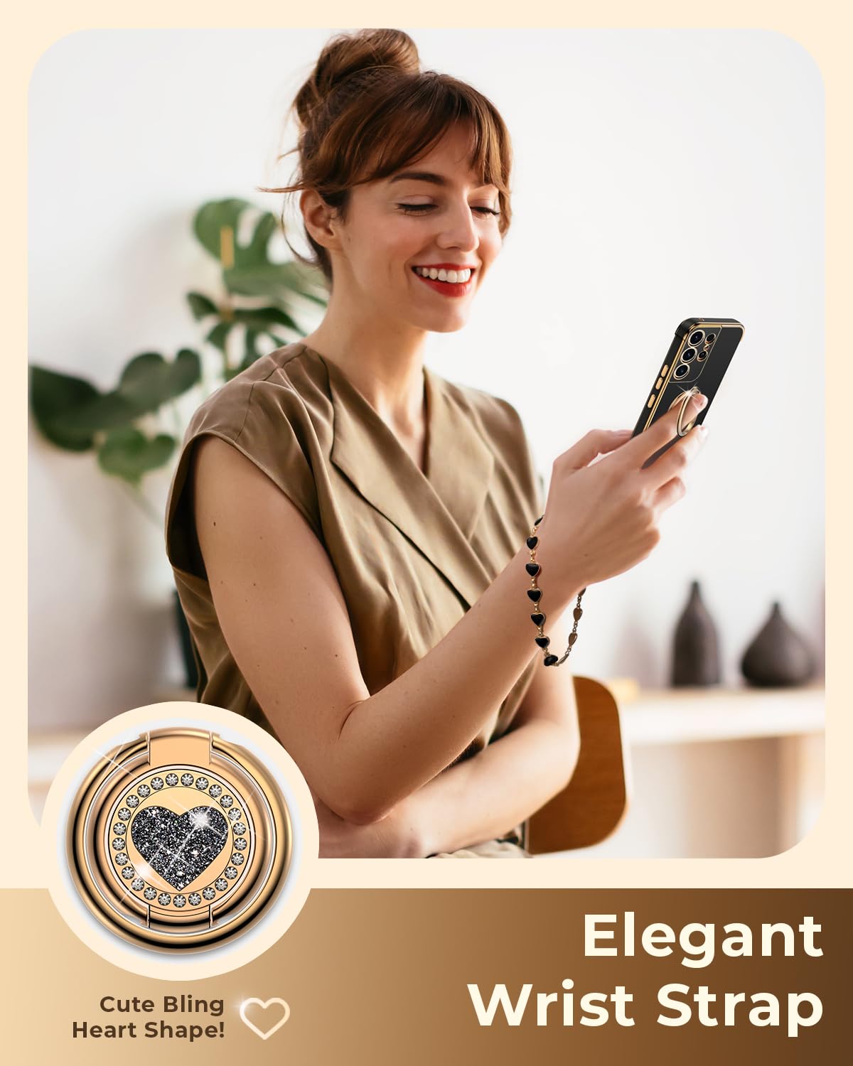 1. Ring Stand - This Ring Stand With A 360 Rotatable Double Ring, Acting As A Finger Grip And Sturdy Stand! 2. Slim Fit & Portable - Perfect For The On-The-Go Individual, This Slim Fit, Portable Phone Case With Wrist Strap, Blending Style, Function And Convenience. Keep Your Hands Free While Shopping, Cycling, Or Taking Photos With Our Attached Chain.
