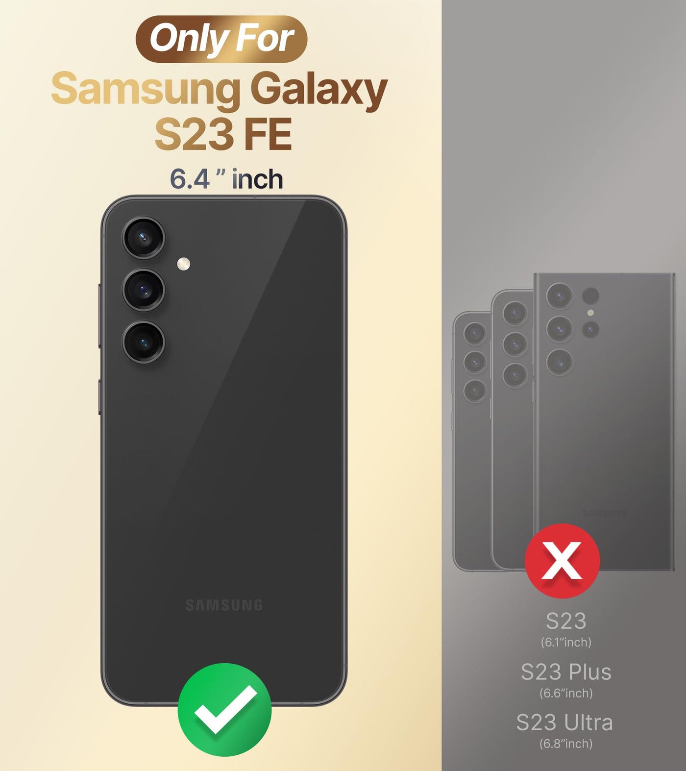 Q: Is this case compatible with other Samsung models?A: No, this case is specifically designed for the Samsung Galaxy S23 FE only, ensuring a perfect fit and access to all features.