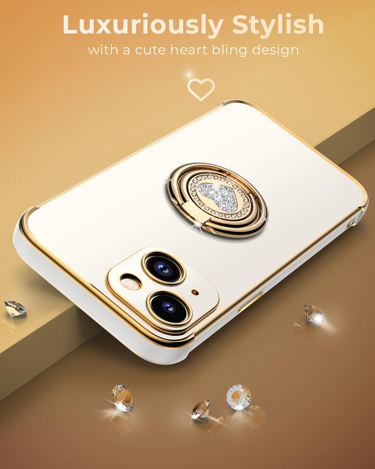 Xyz For Iphone 13 Case With Stand, Phone Case With Double Ring Kickstand, Women Girls Bling Luxury Protective Case Heart For Iph